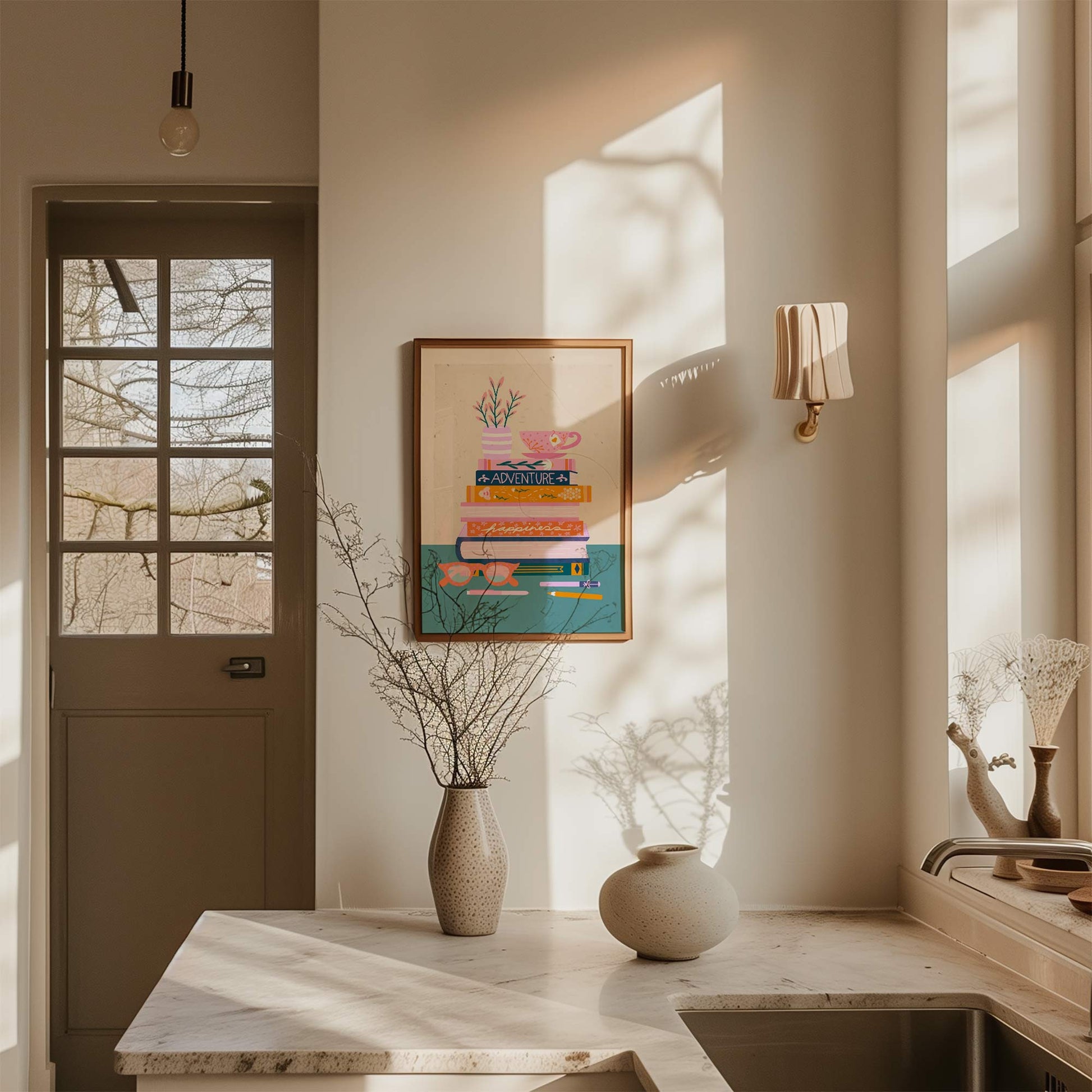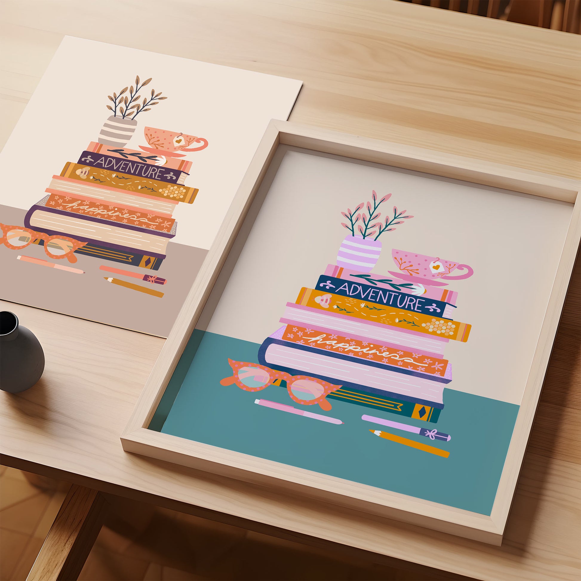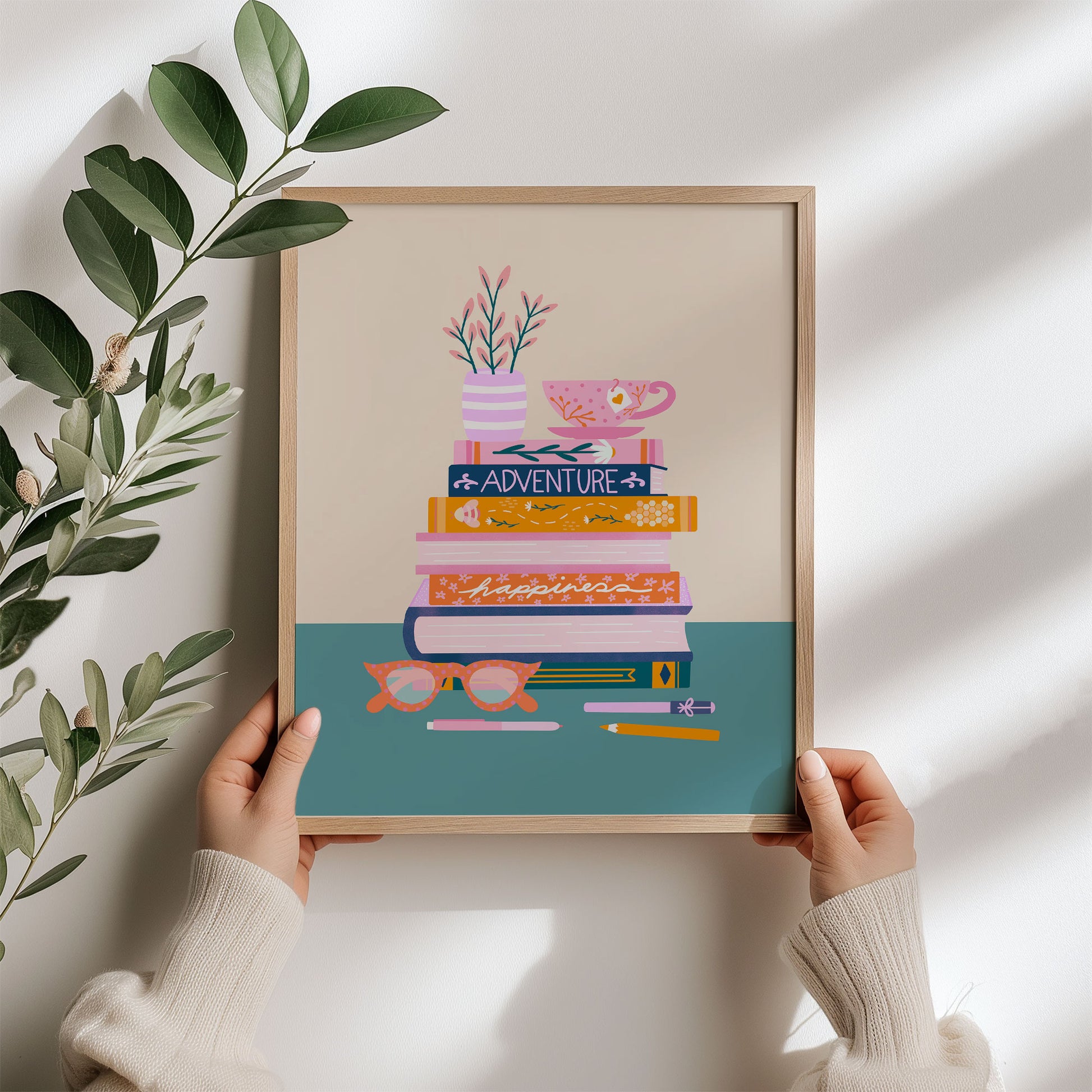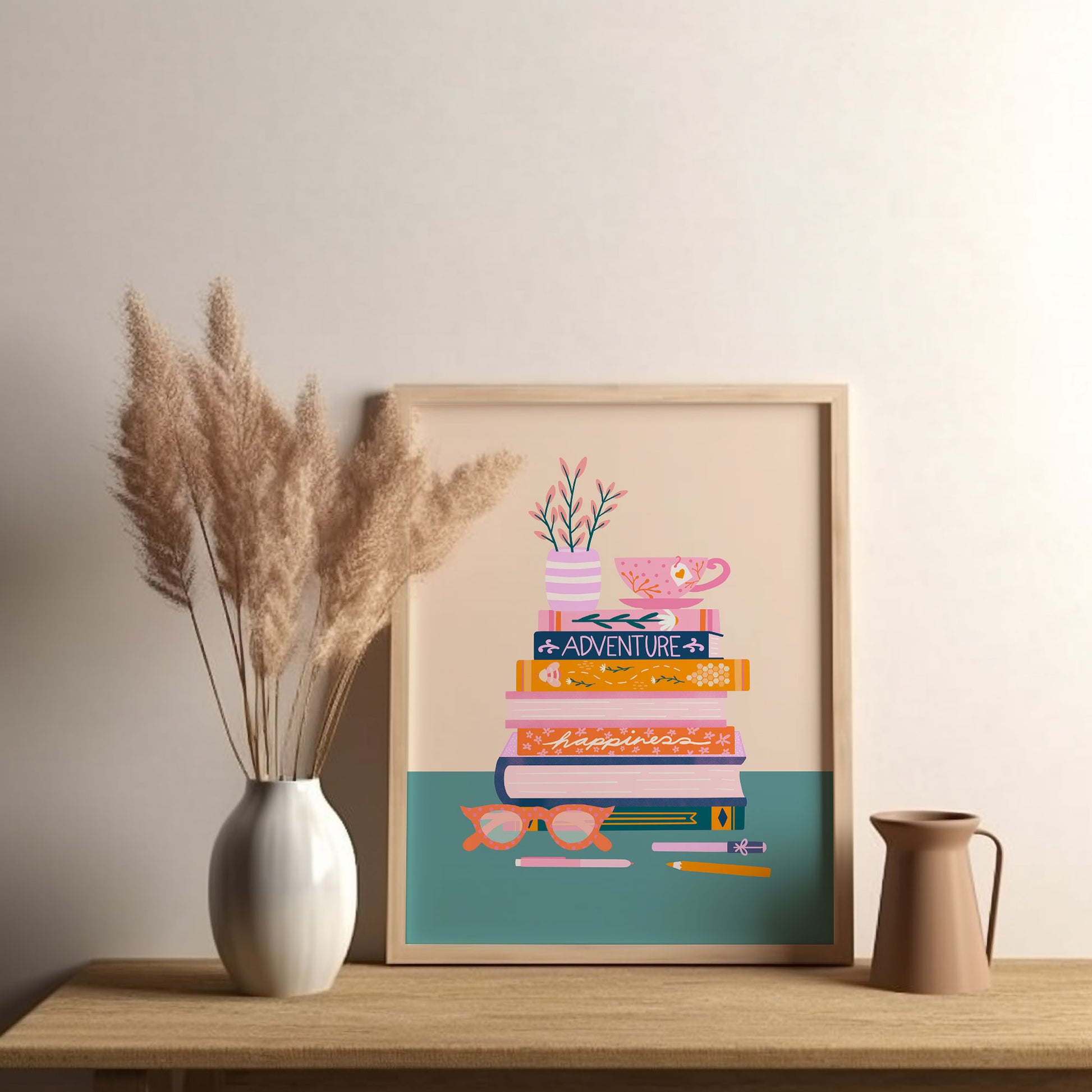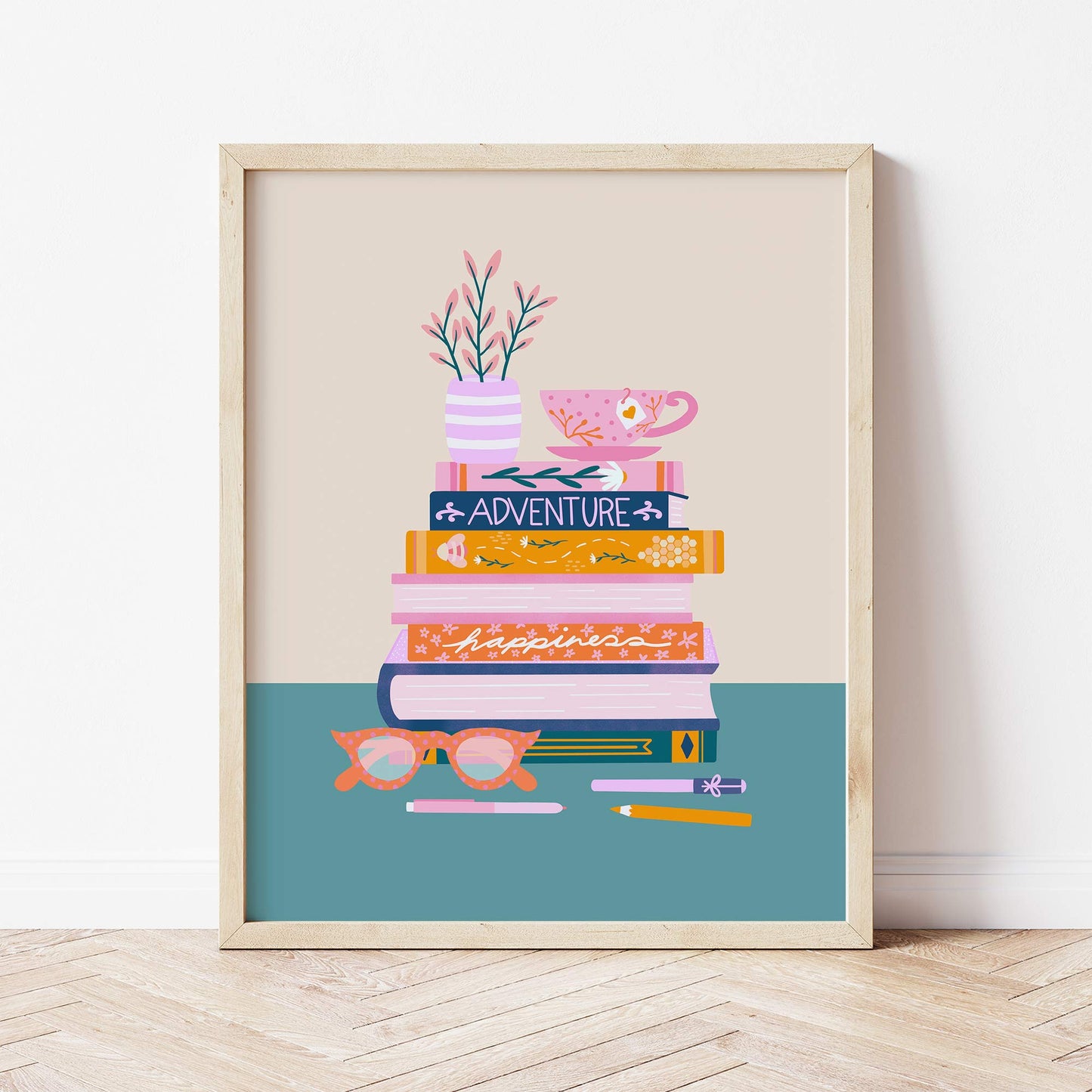 A beautiful illustrated Bookish Fun Pink Art Print. An art print that will bring a gorgeous pop of colour to your home or office.