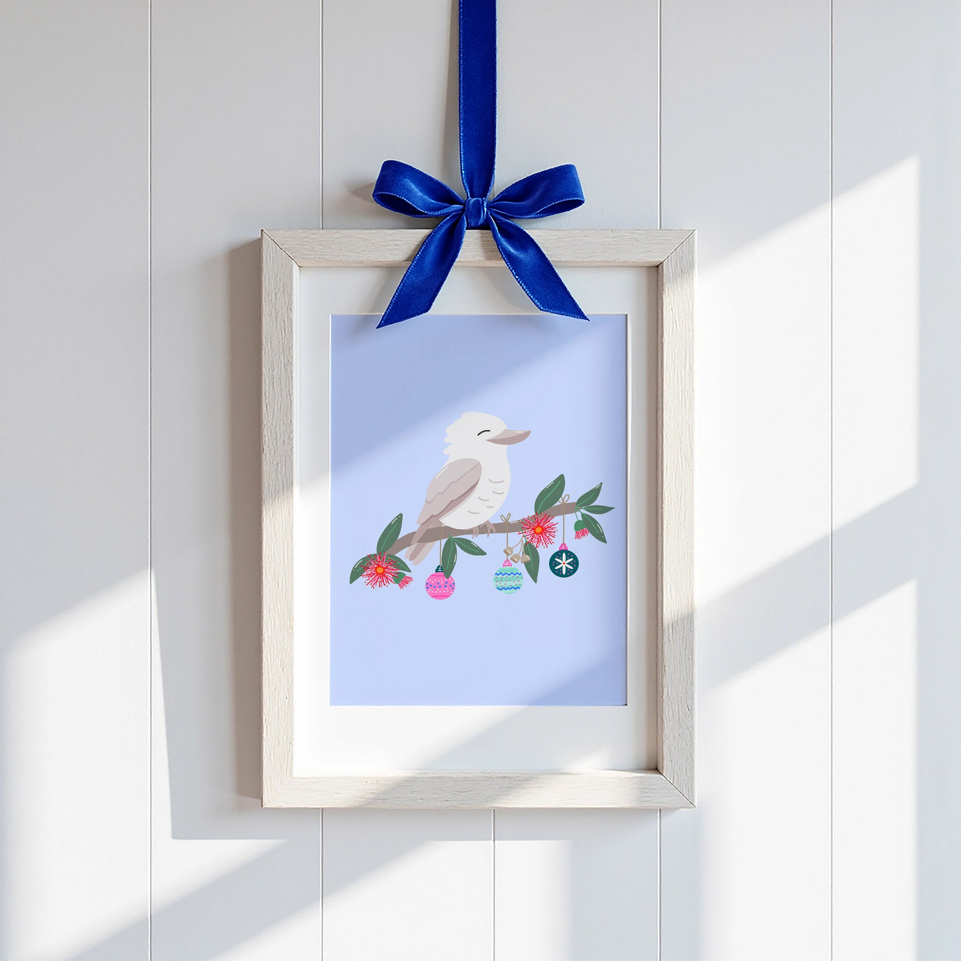 A beautiful illustrated Christmas Kookaburra Art Print. An art print that will bring a gorgeous pop of colour to your home.