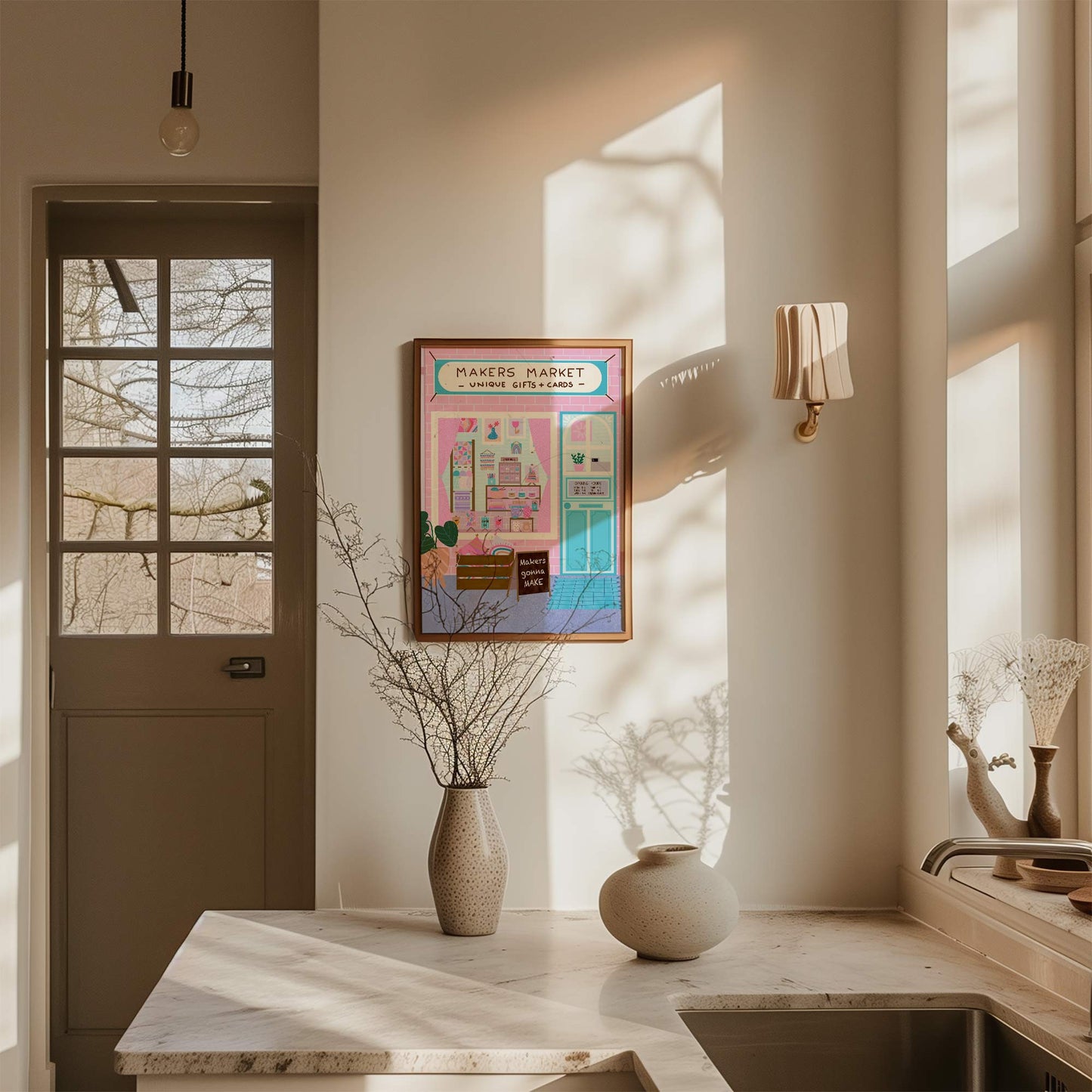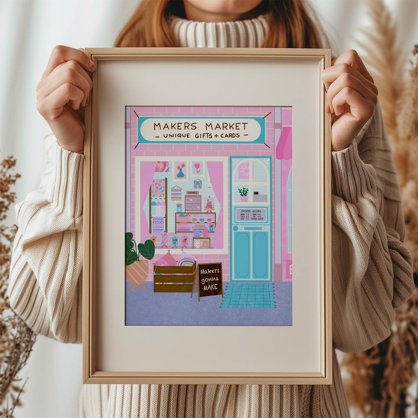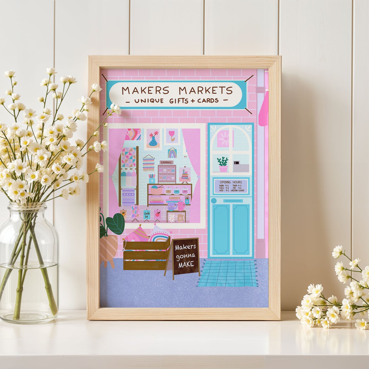 A beautiful illustrated Makers Market Bright Art Print. An art print that will bring a gorgeous pop of colour to your home, kitchen or office.