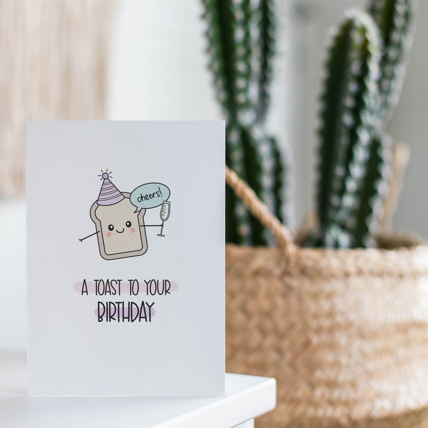 A fun handmade Birthday Card featuring toast with the words A toast to your birthday.