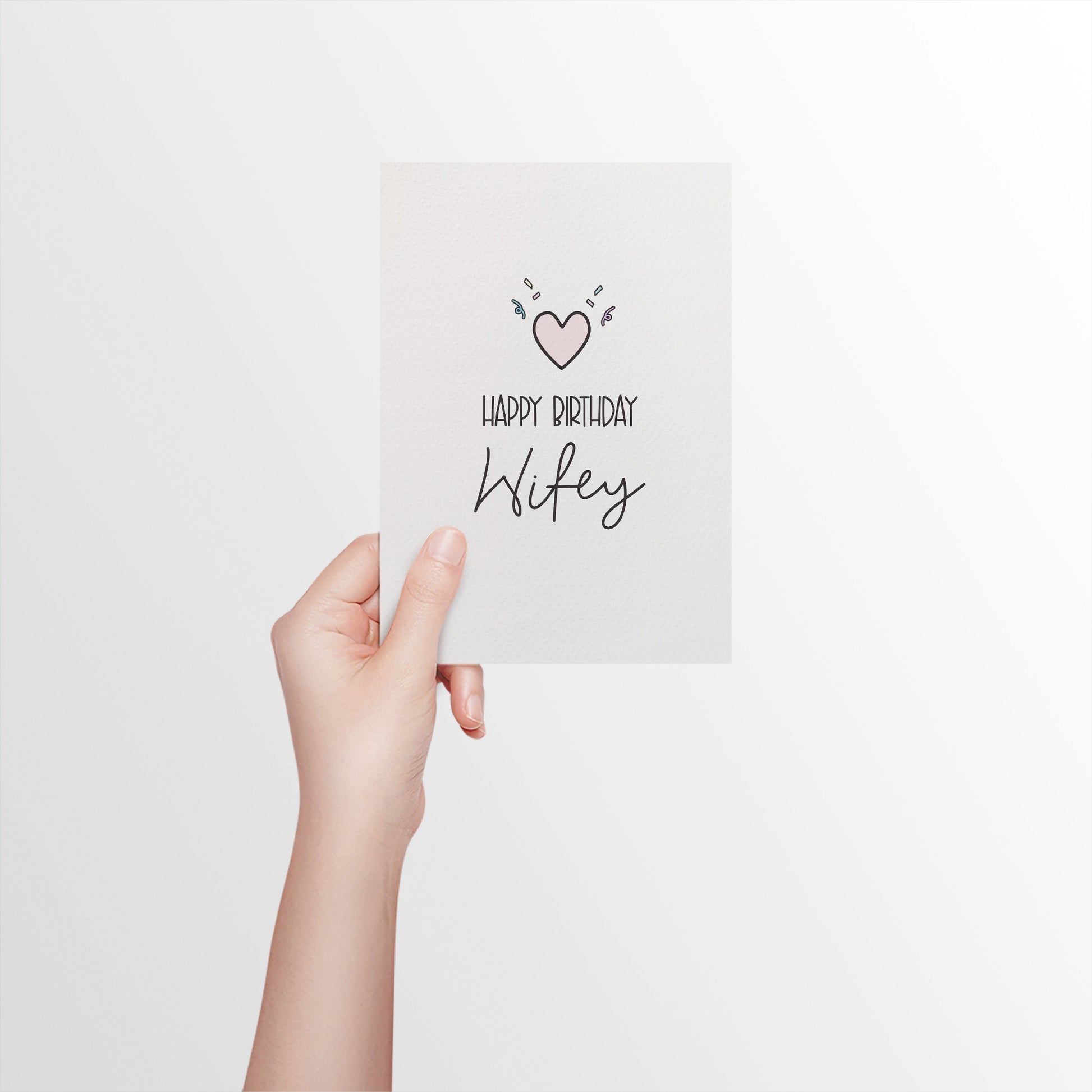 A fun handmade Birthday Card featuring a heart with the words Happy Birthday Wifey.