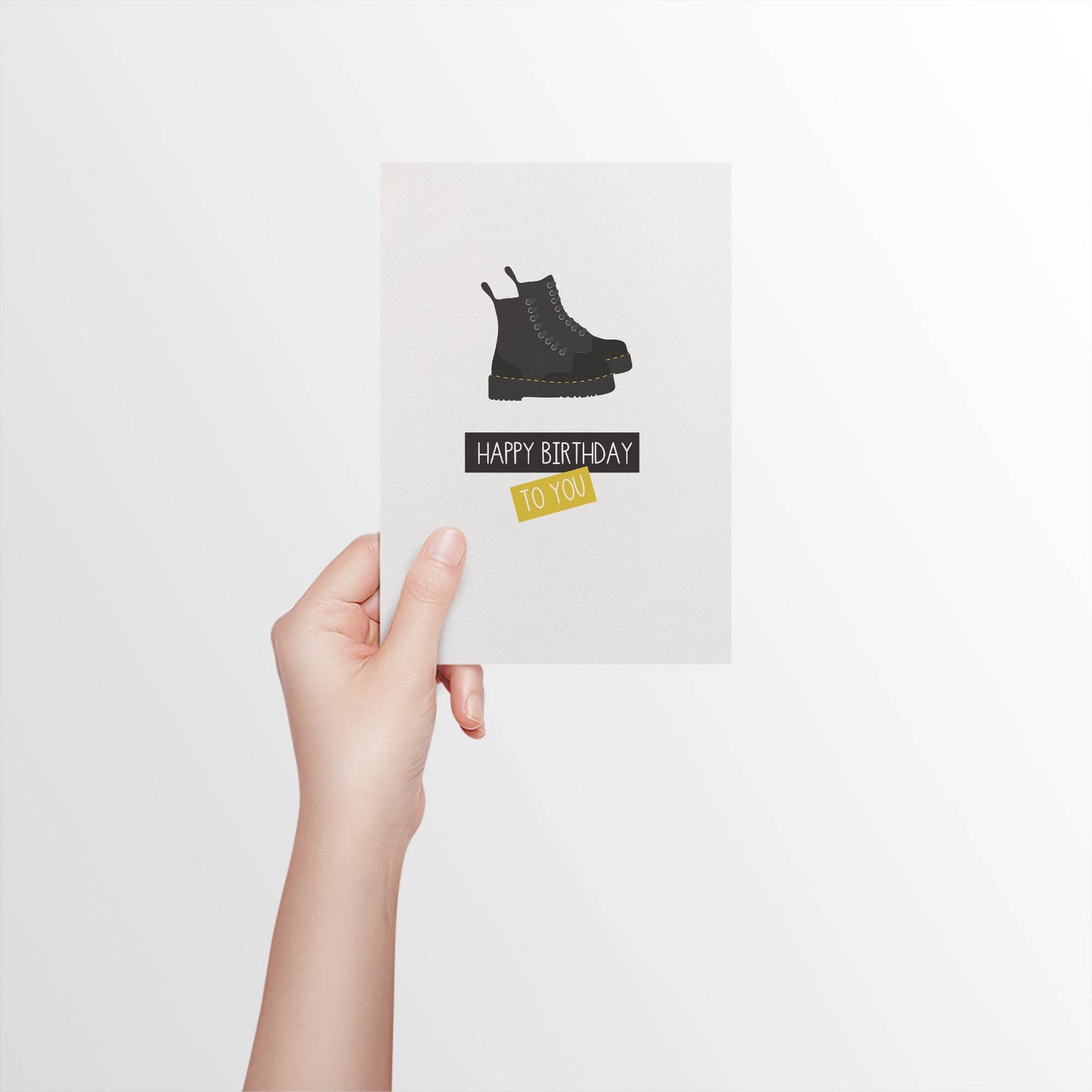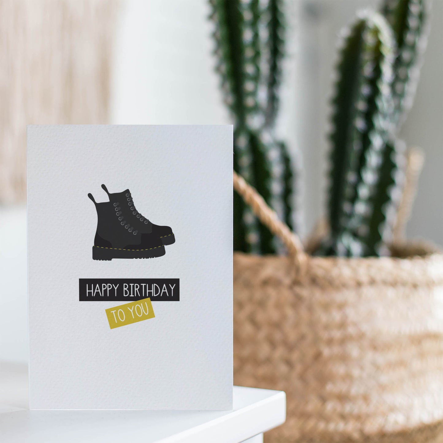 This Birthday Card features black boots and the words Happy Birthday to you perfect for the teenage girl.