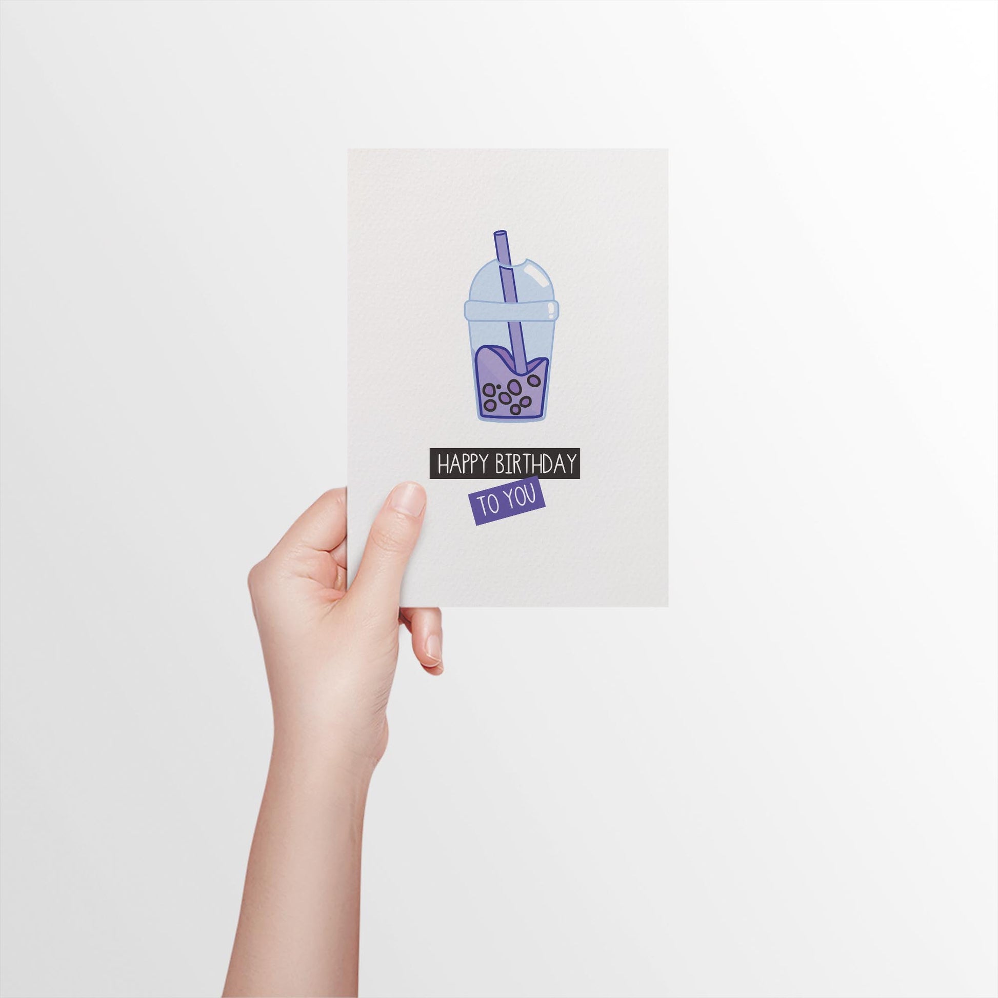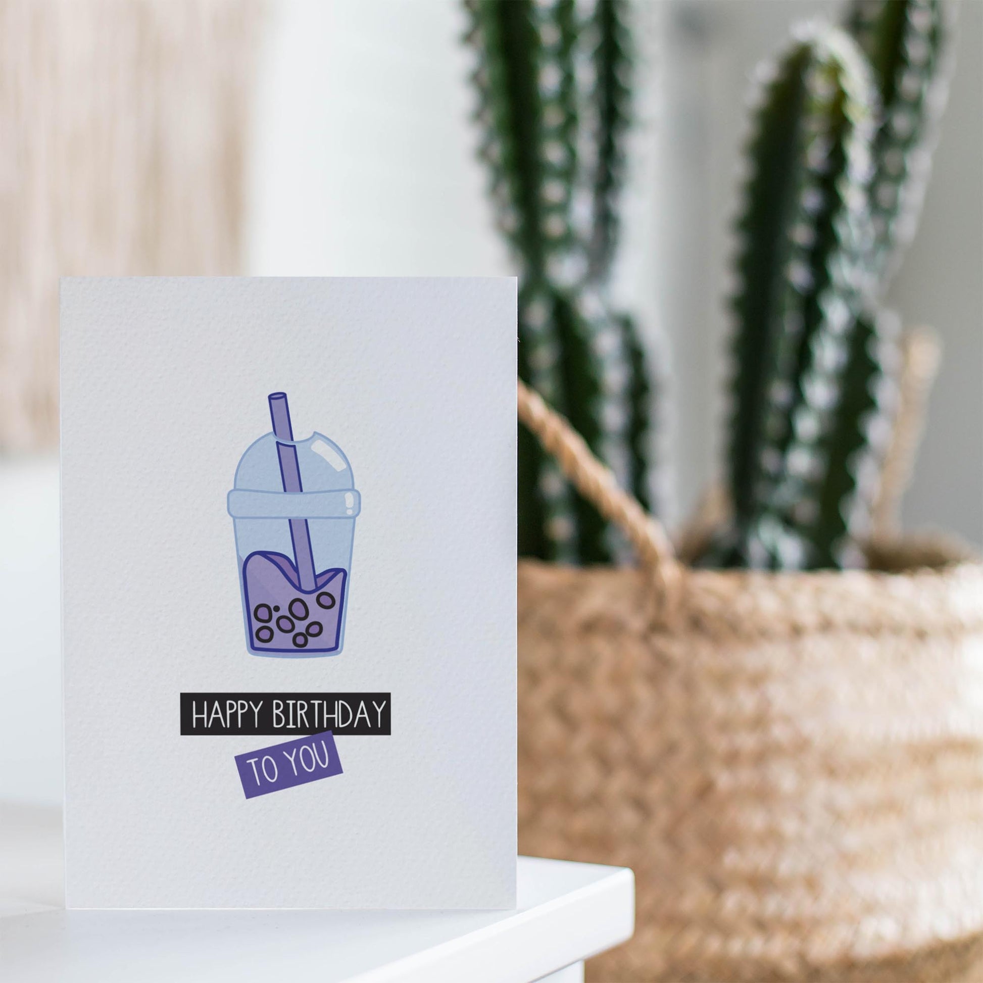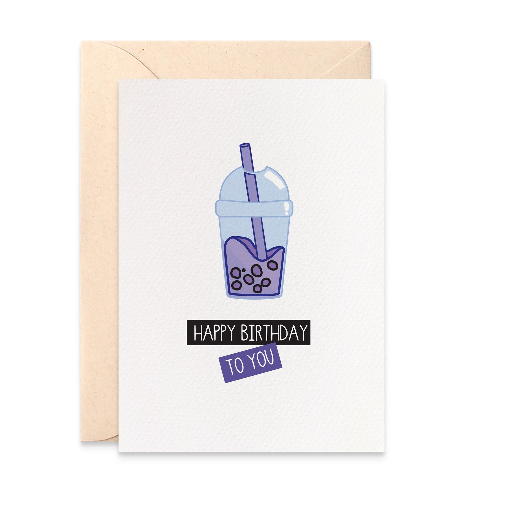 A fun and bright handmade Birthday Card featuring Bubble Tea with the words Happy Birthday To You. A fun greeting card for children, teenagers and adults.
