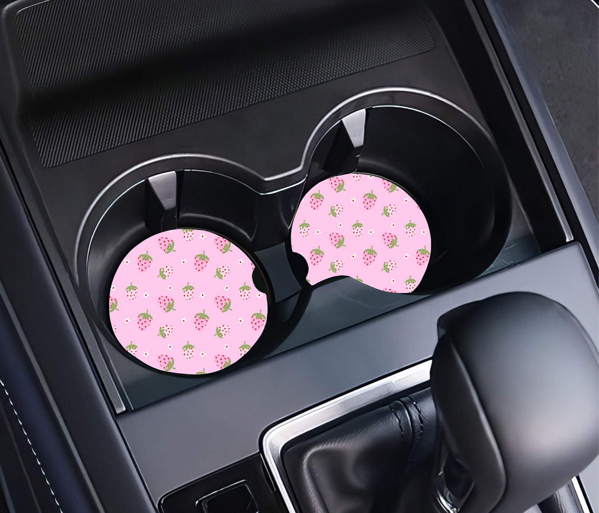 These strawberries on pink car coasters come as a set of two and add a playful, colourful touch to your car's interior.