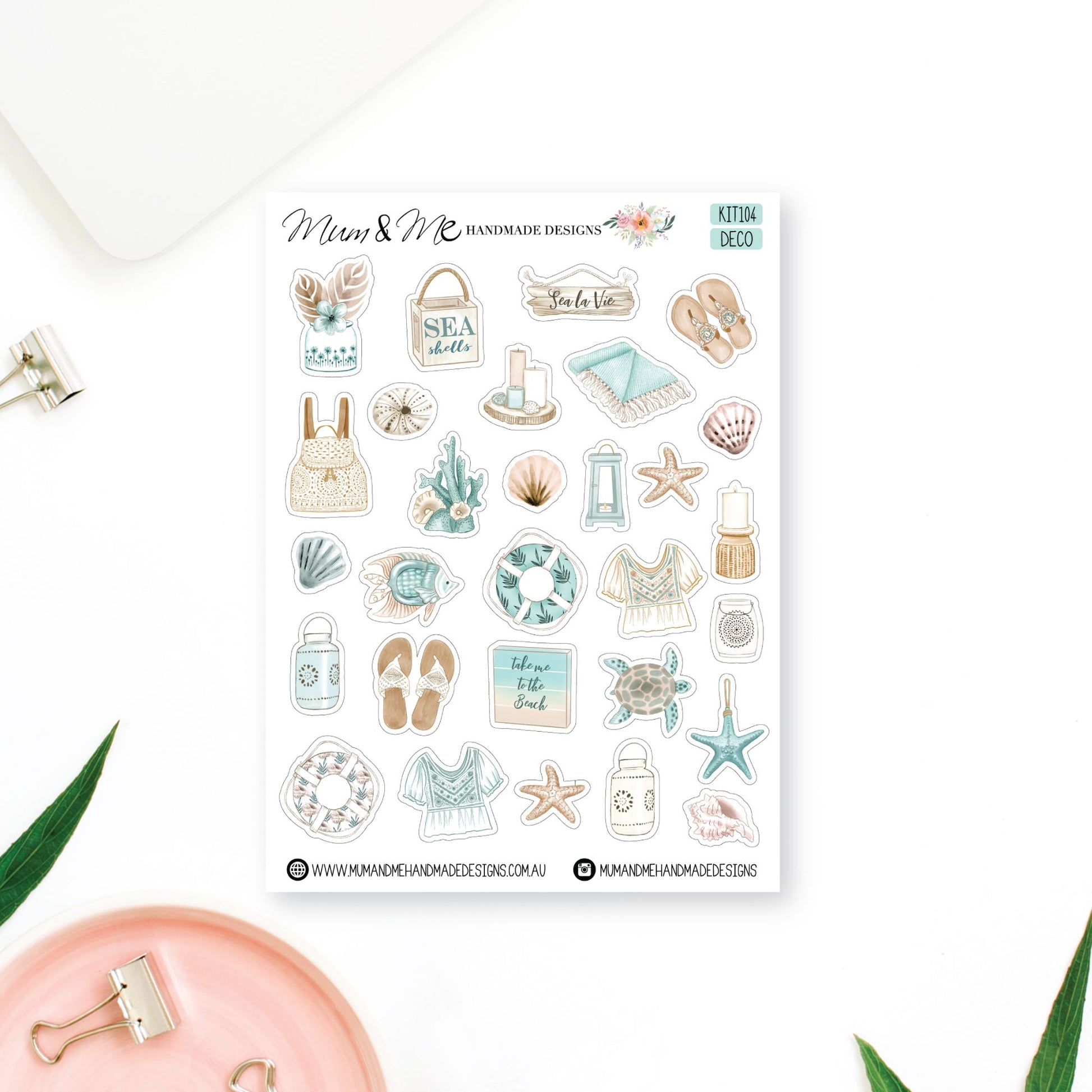 Stylish planner stickers featuring Deco Coastal stickers. These stickers are perfect for planners such as Erin Condren, Happy Planner, Kikki K etc.