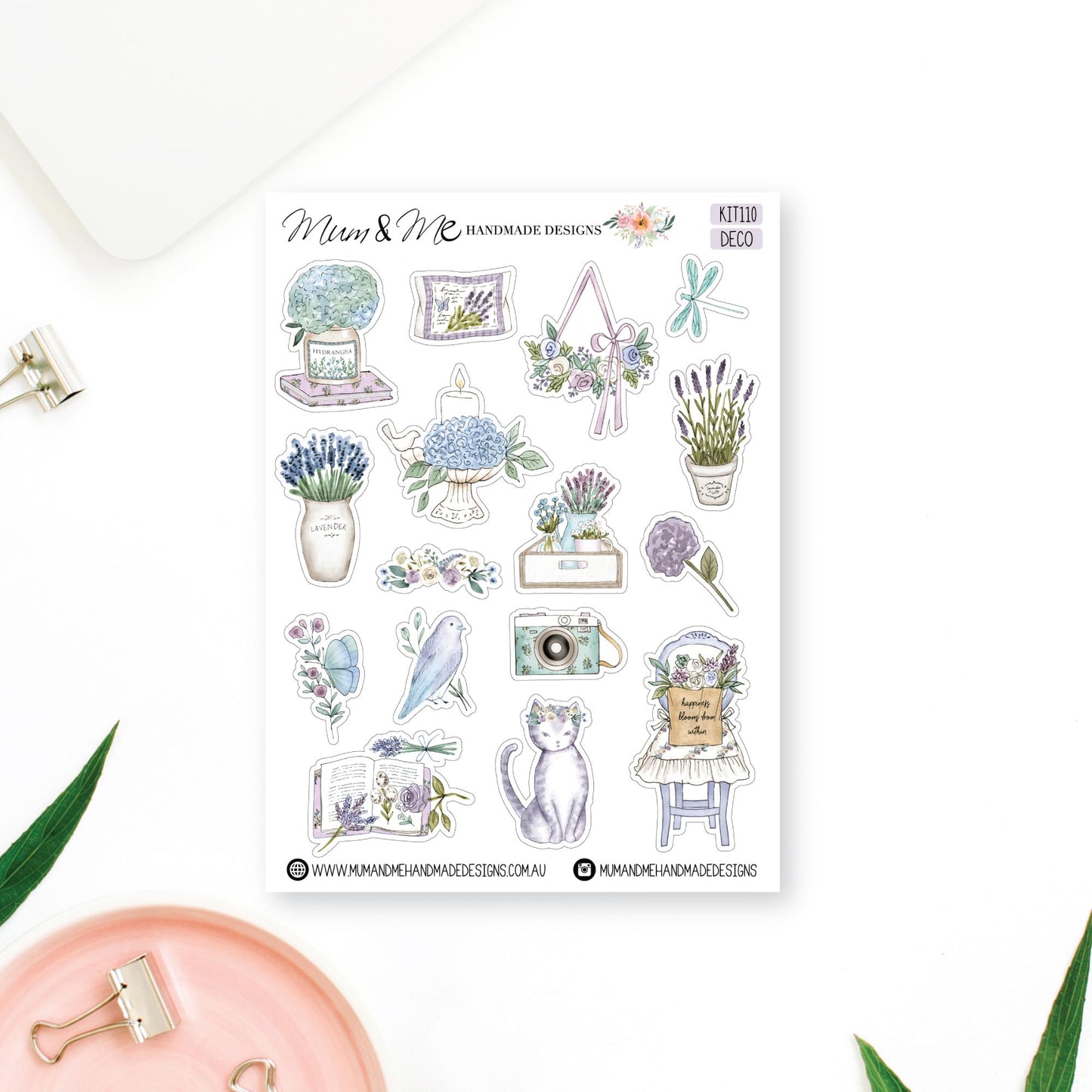 Stylish planner stickers featuring deco lavender stickers. These stickers are perfect for planners such as Erin Condren, Happy Planner, Kikki K etc.