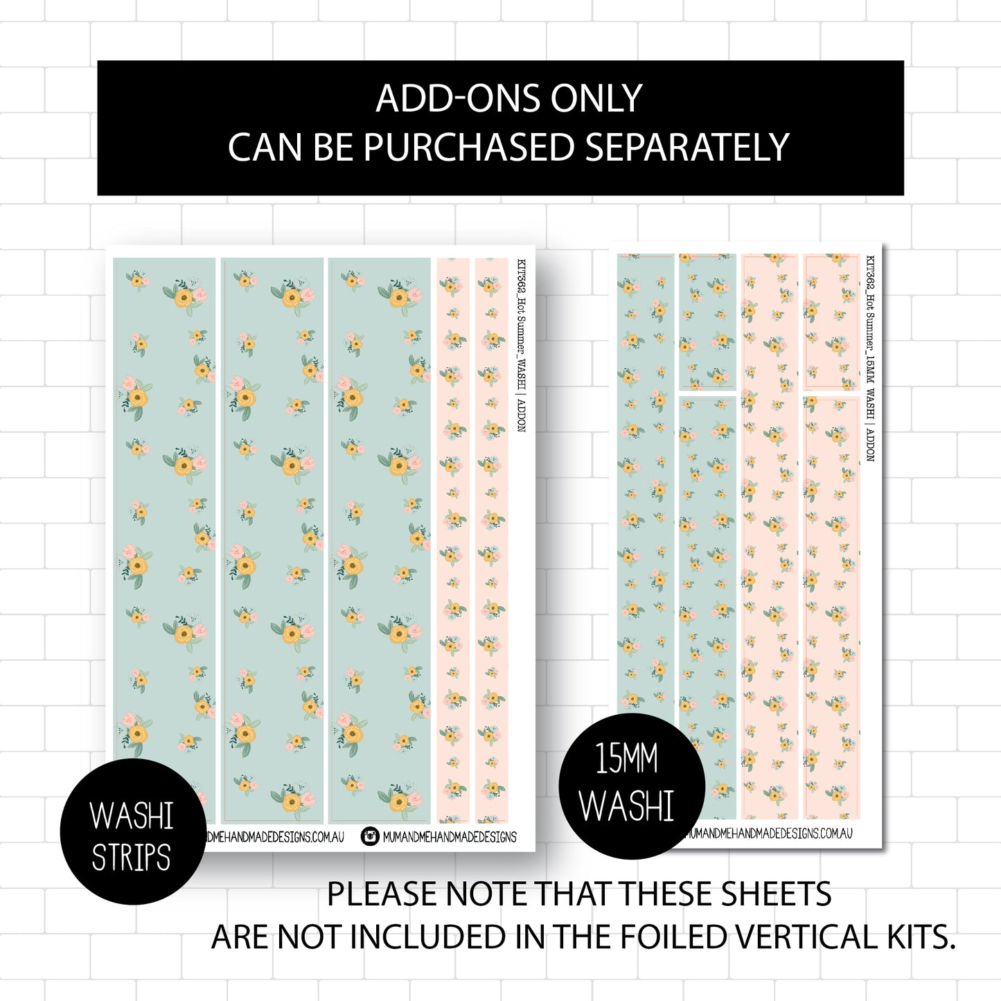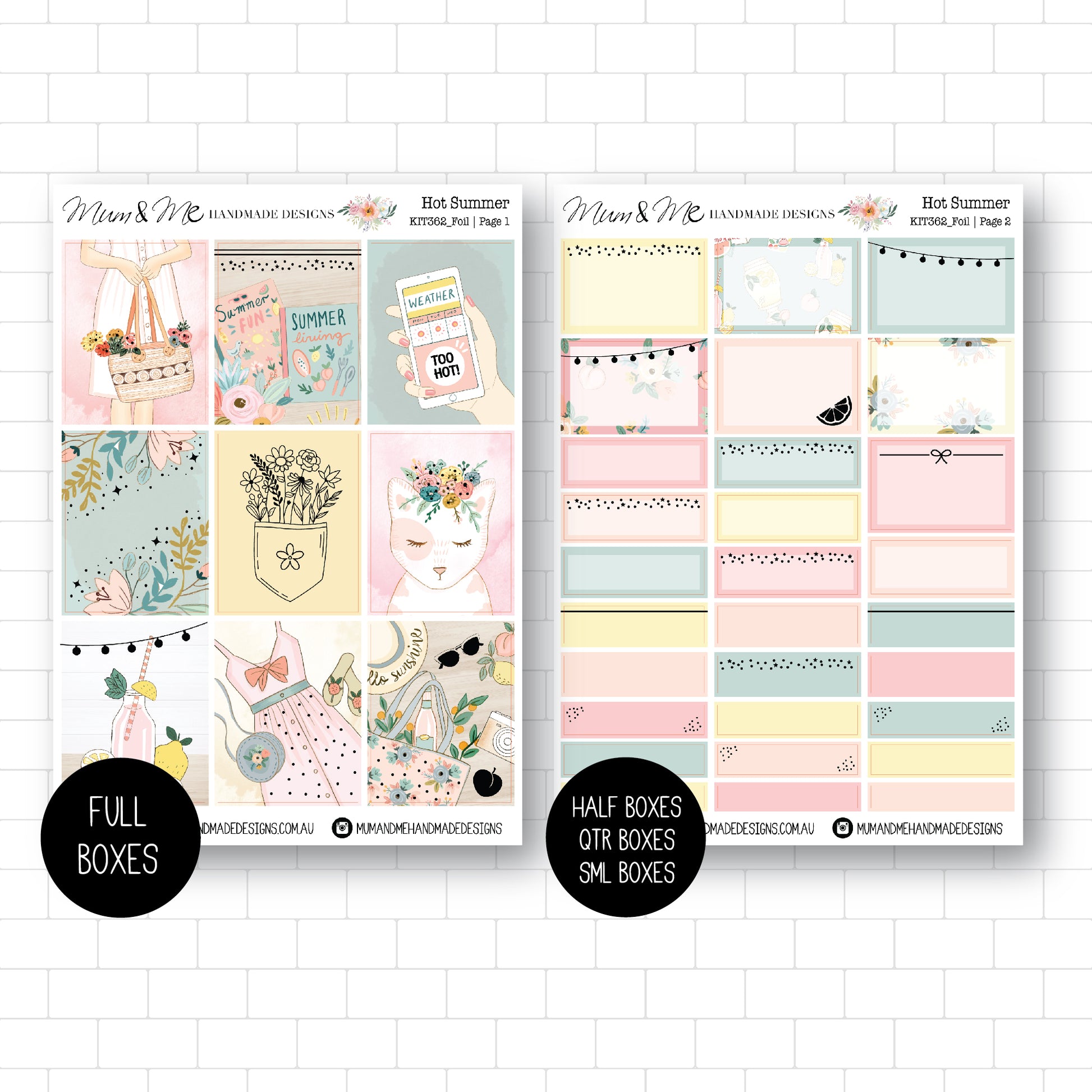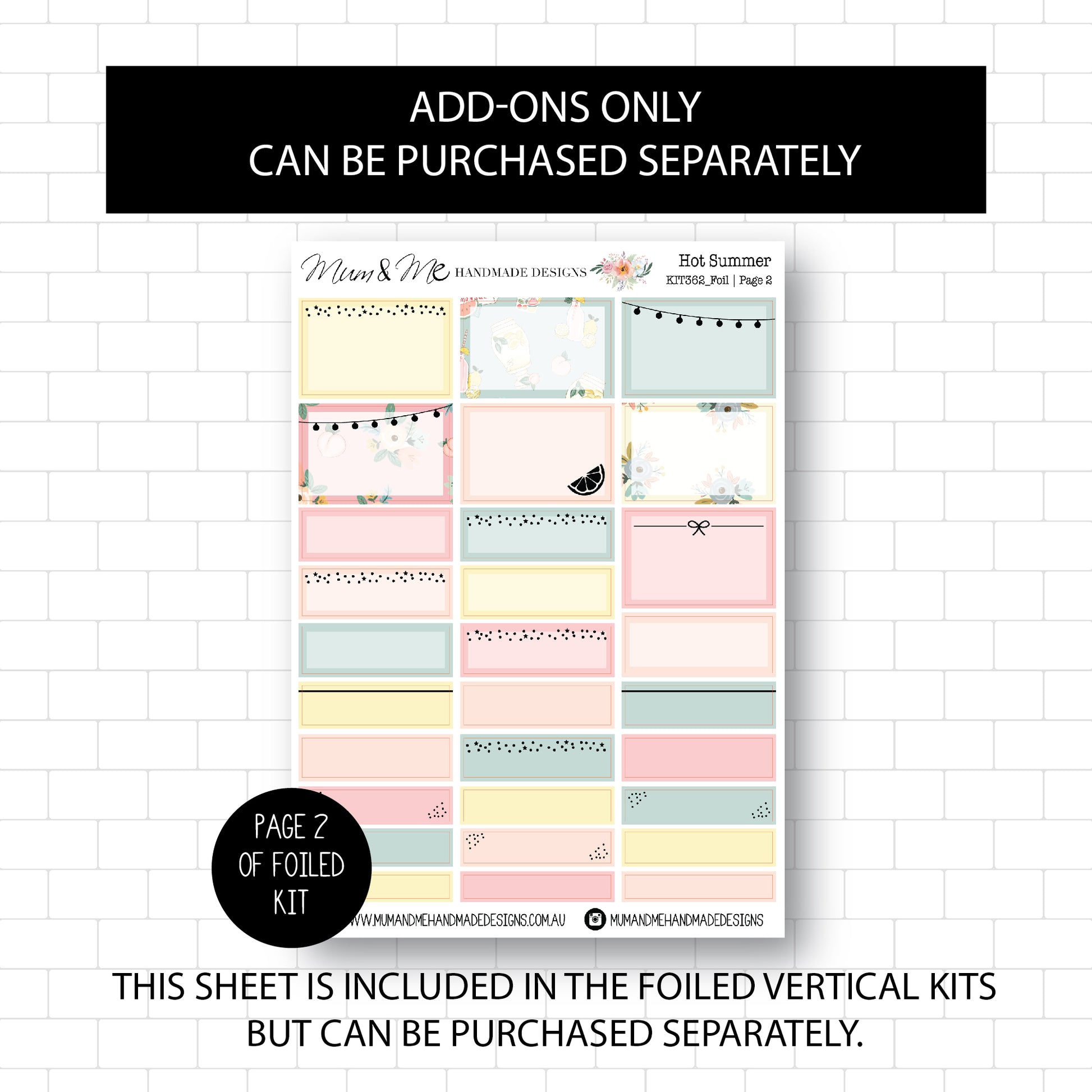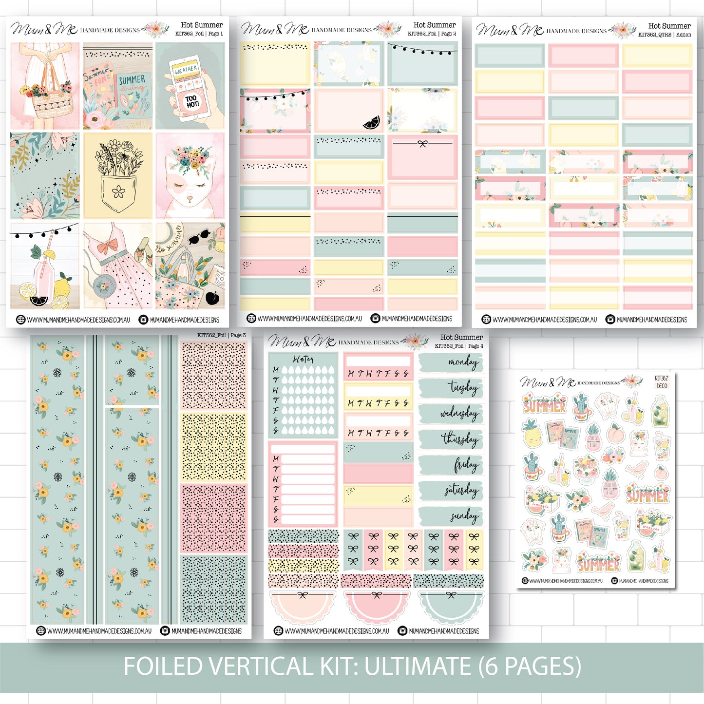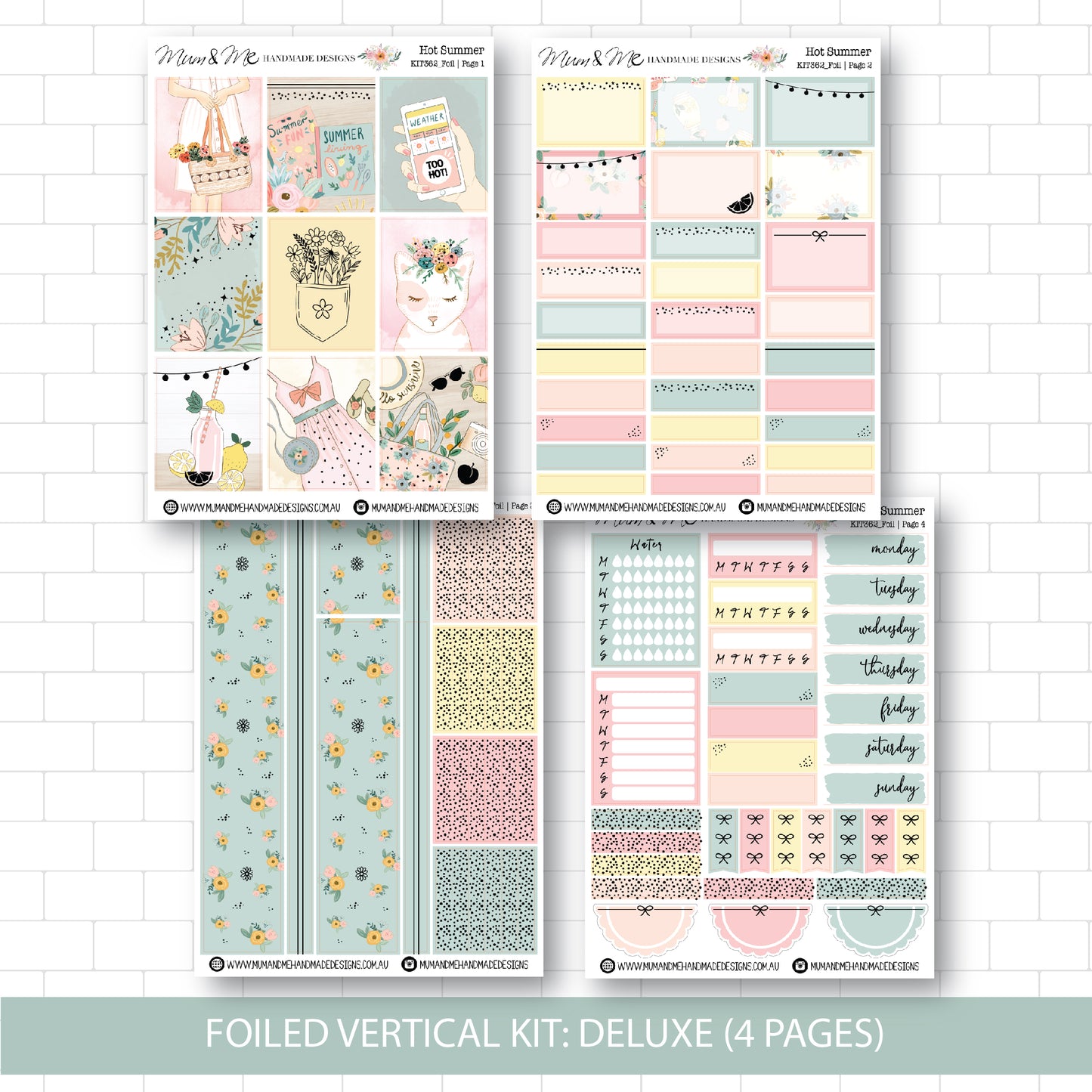 A beautiful foiled Vertical Sticker Kit featuring a Hot Summer theme. These foiled planner stickers are perfect for planners such as the Vertical Erin Condren Planner, The Happy Planner, Kikki K etc.