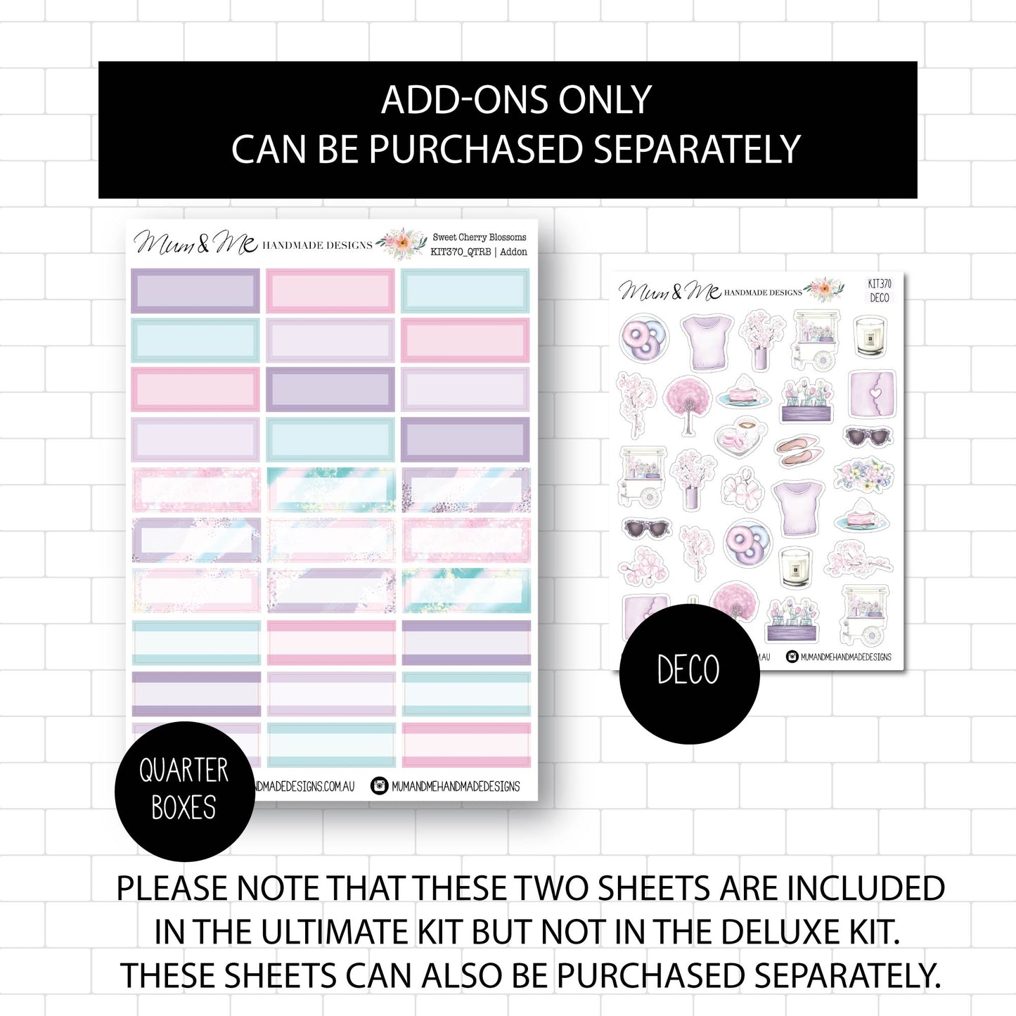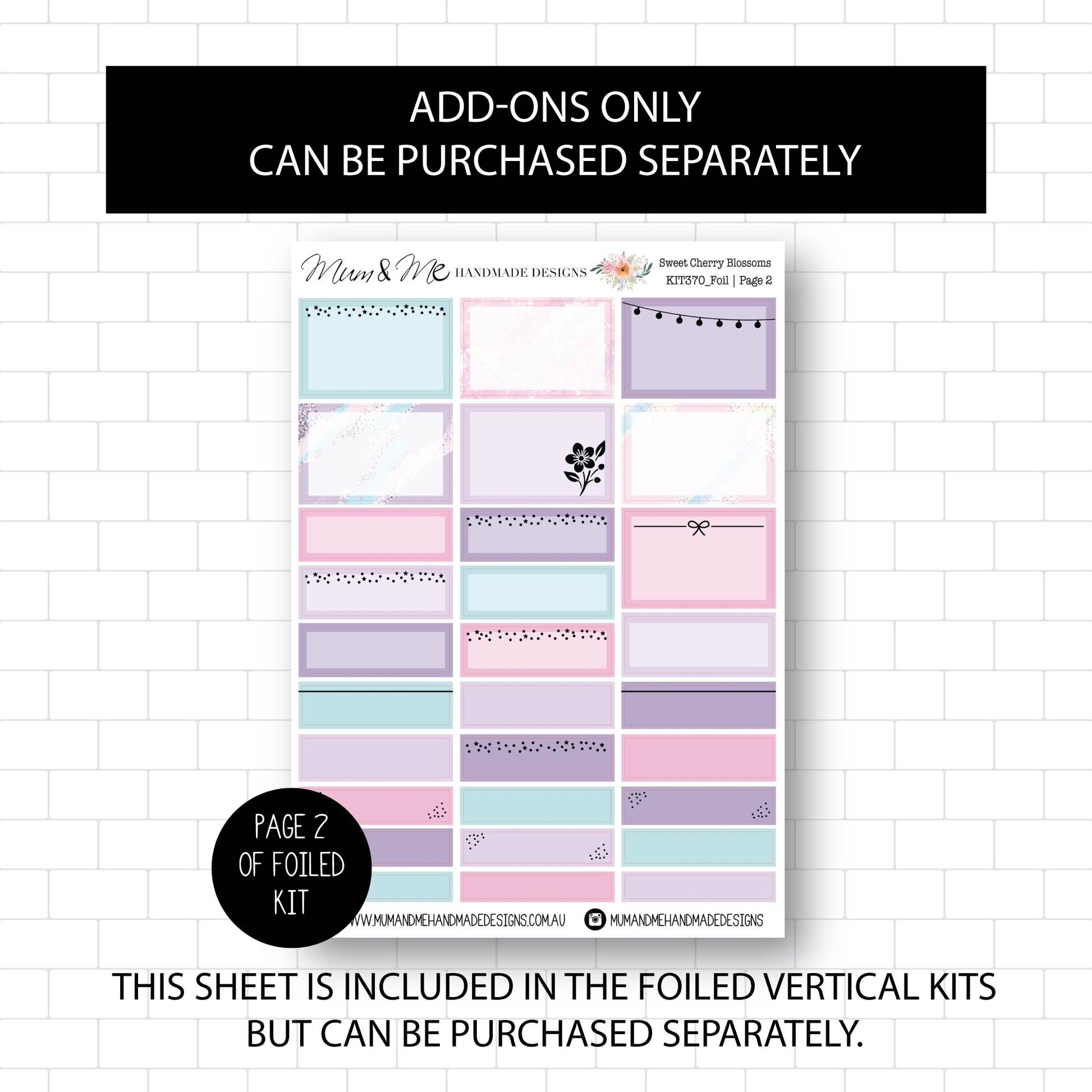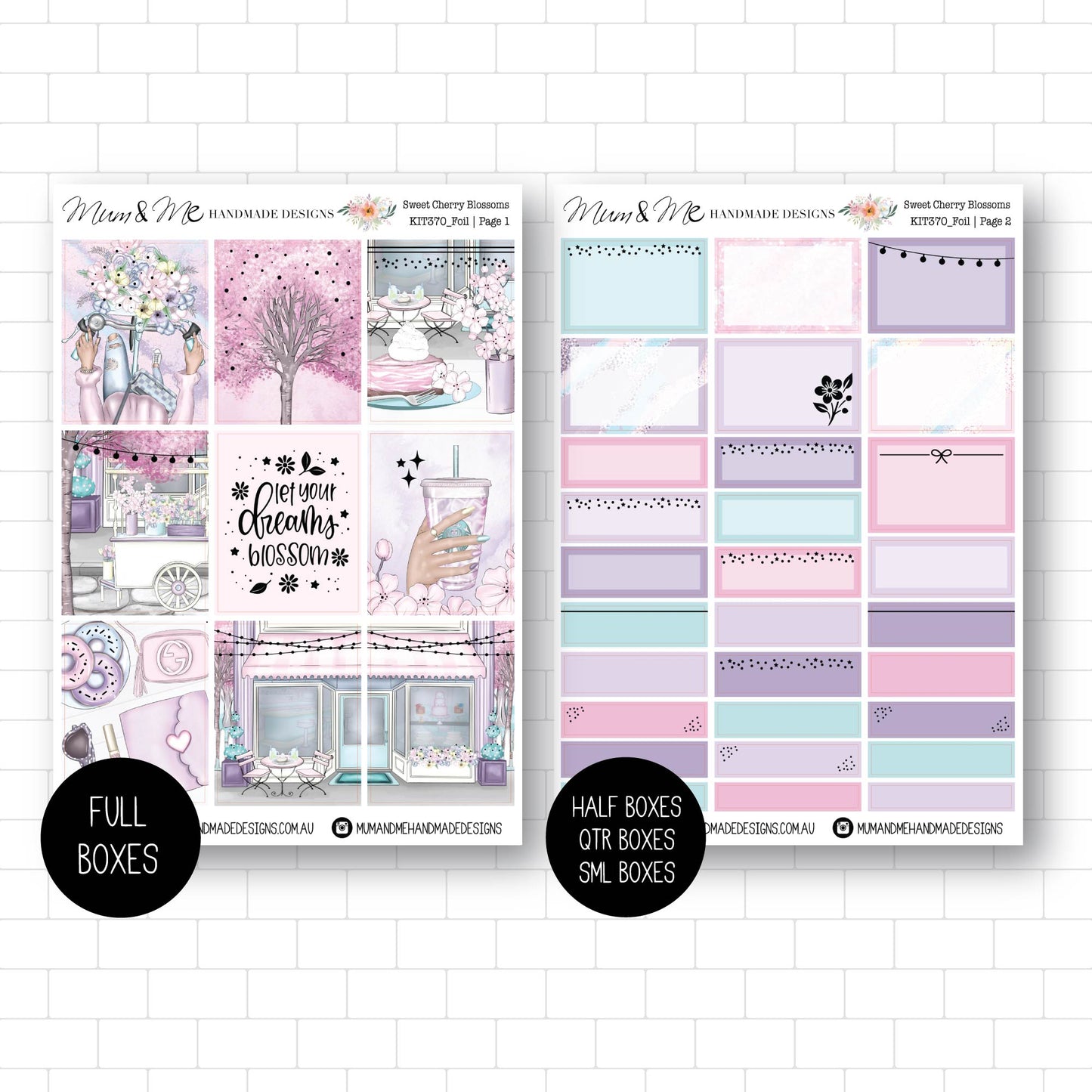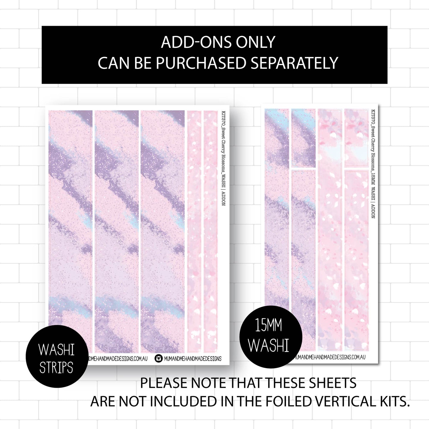 A beautiful foiled Vertical Sticker Kit featuring a Sweet Cherry Blossoms theme. These foiled planner stickers are perfect for planners such as the Vertical Erin Condren Planner, The Happy Planner, Kikki K etc.