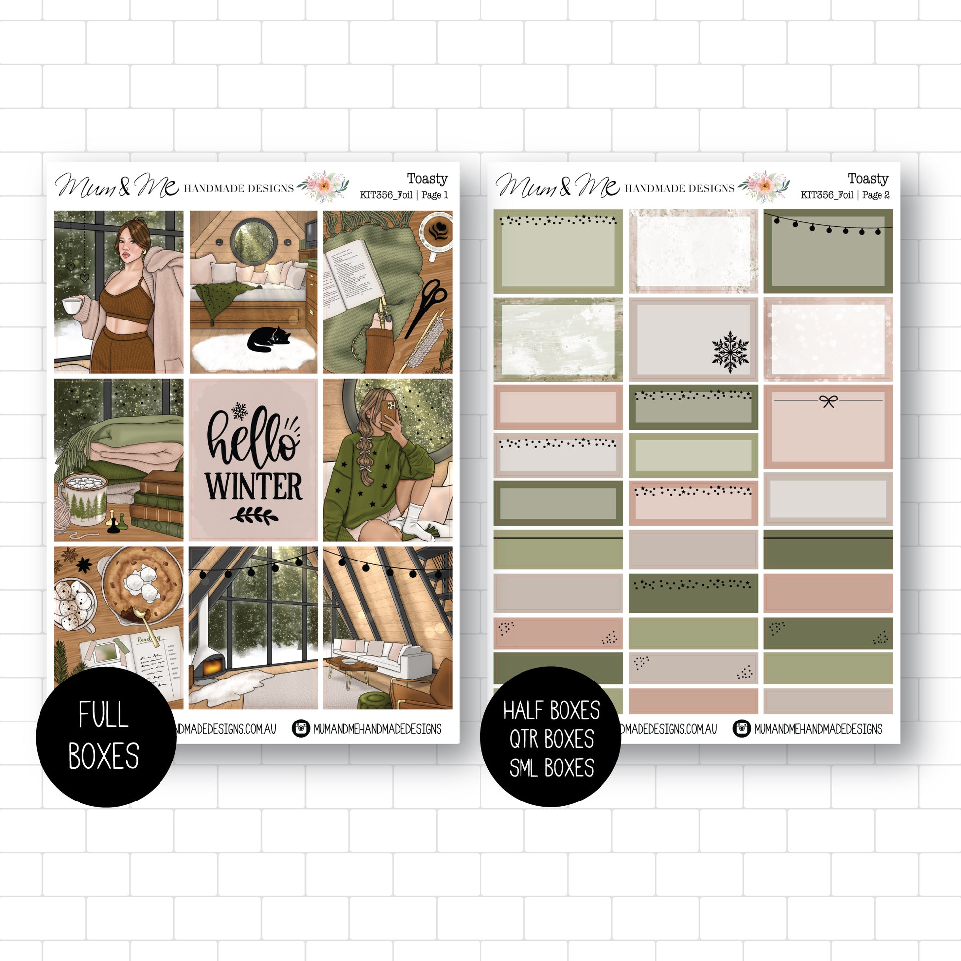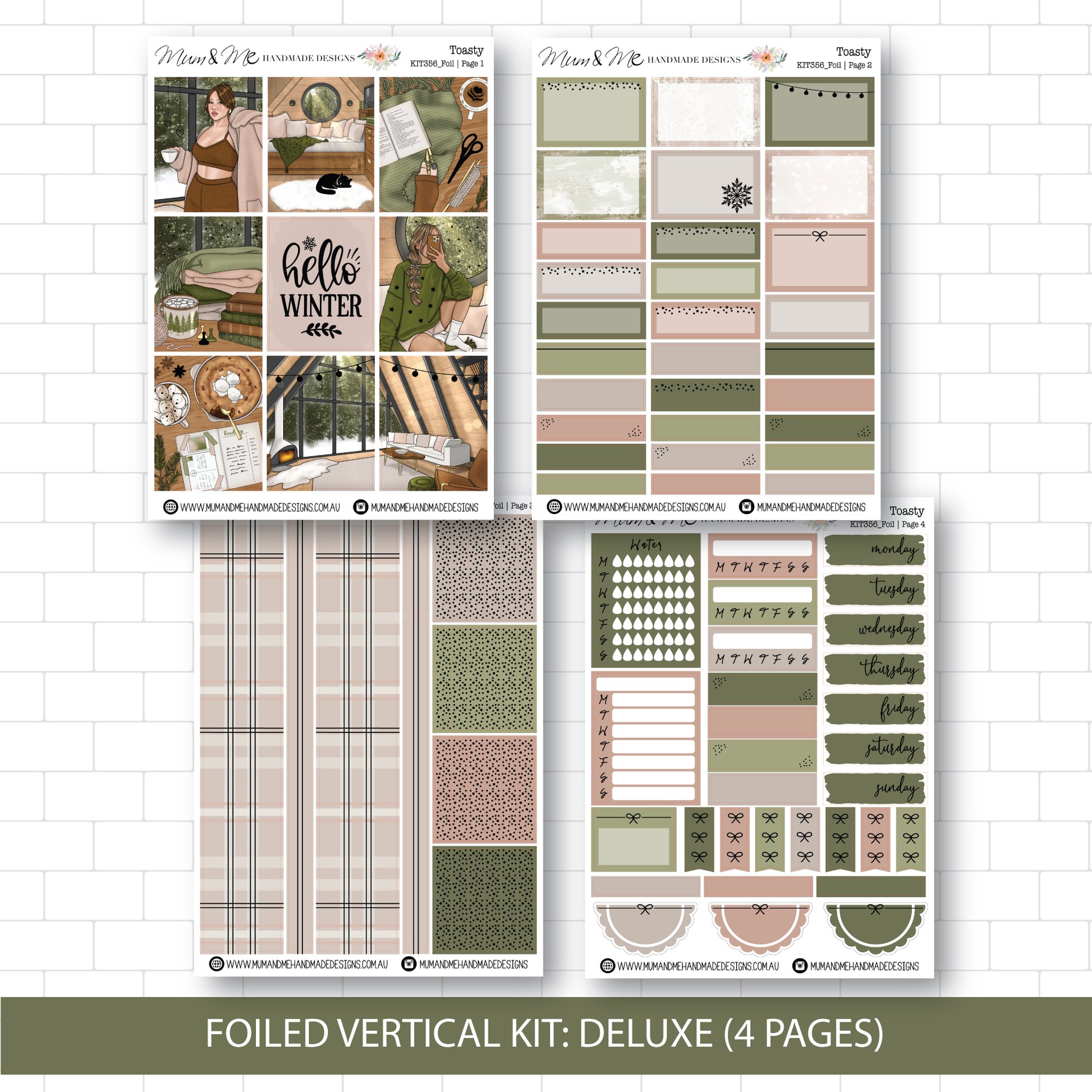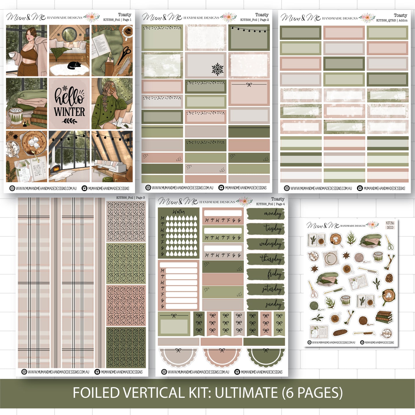 A beautiful foiled Vertical Sticker Kit featuring a Toasty Winter theme. These foiled planner stickers are perfect for planners such as the Vertical Erin Condren Planner, The Happy Planner, Kikki K etc.