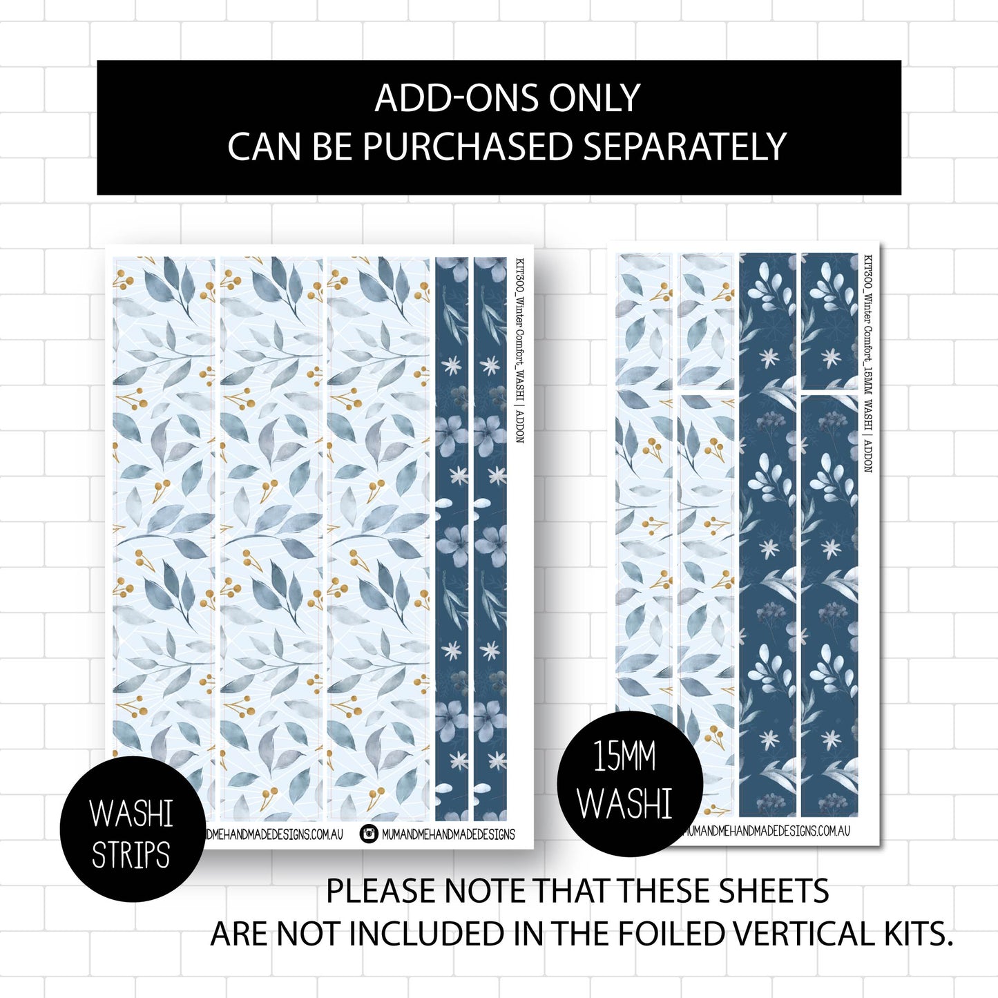 A beautiful foiled Vertical Sticker Kit featuring a Winter theme. These foiled planner stickers are perfect for planners such as the Vertical Erin Condren Planner, The Happy Planner, Kikki K etc.