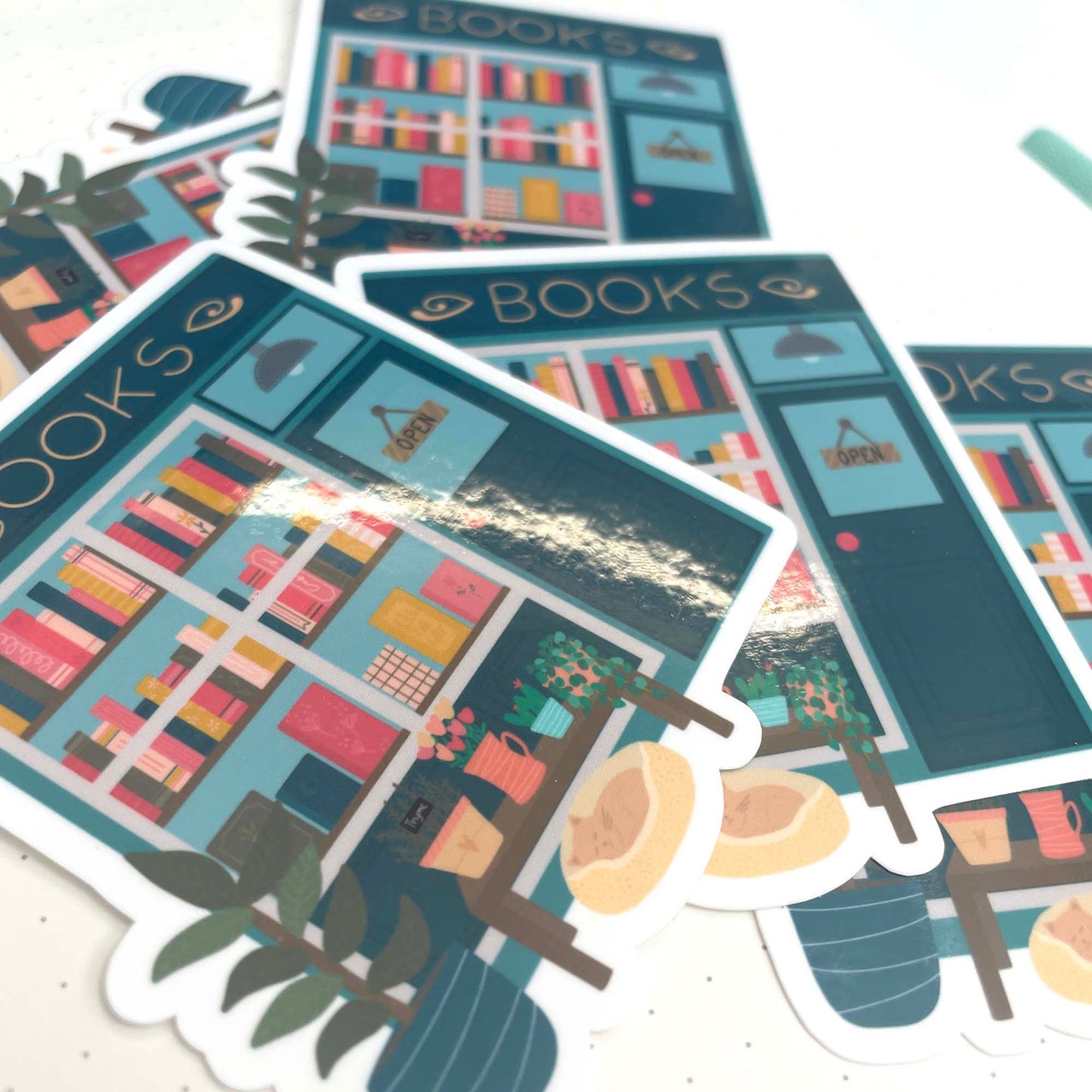 A fun Book Store Die Cut Sticker. These stickers are printed on premium matte sticker paper with a clear overlay.