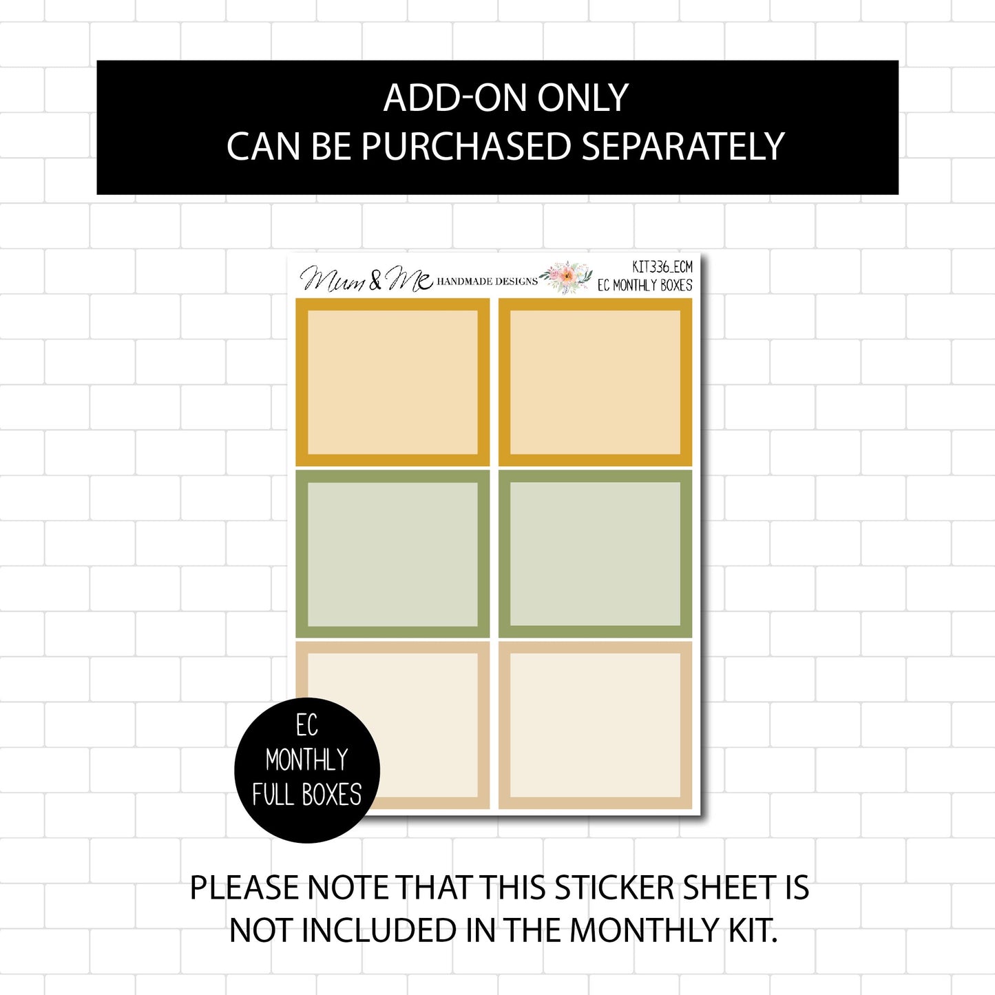 There is an option to purchase an add-on : EC Monthly Full Boxes (Matching Colours to this kit). Boxes are the same size as the beautiful Full Boxes in this kit.