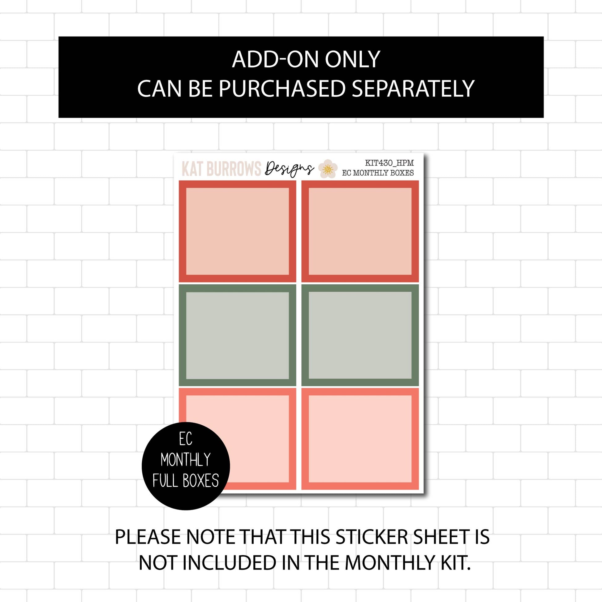 There is an option to purchase an add-on : EC Monthly Full Boxes (Matching Colours to this kit). Boxes are the same size as the beautiful Full Boxes in this kit.