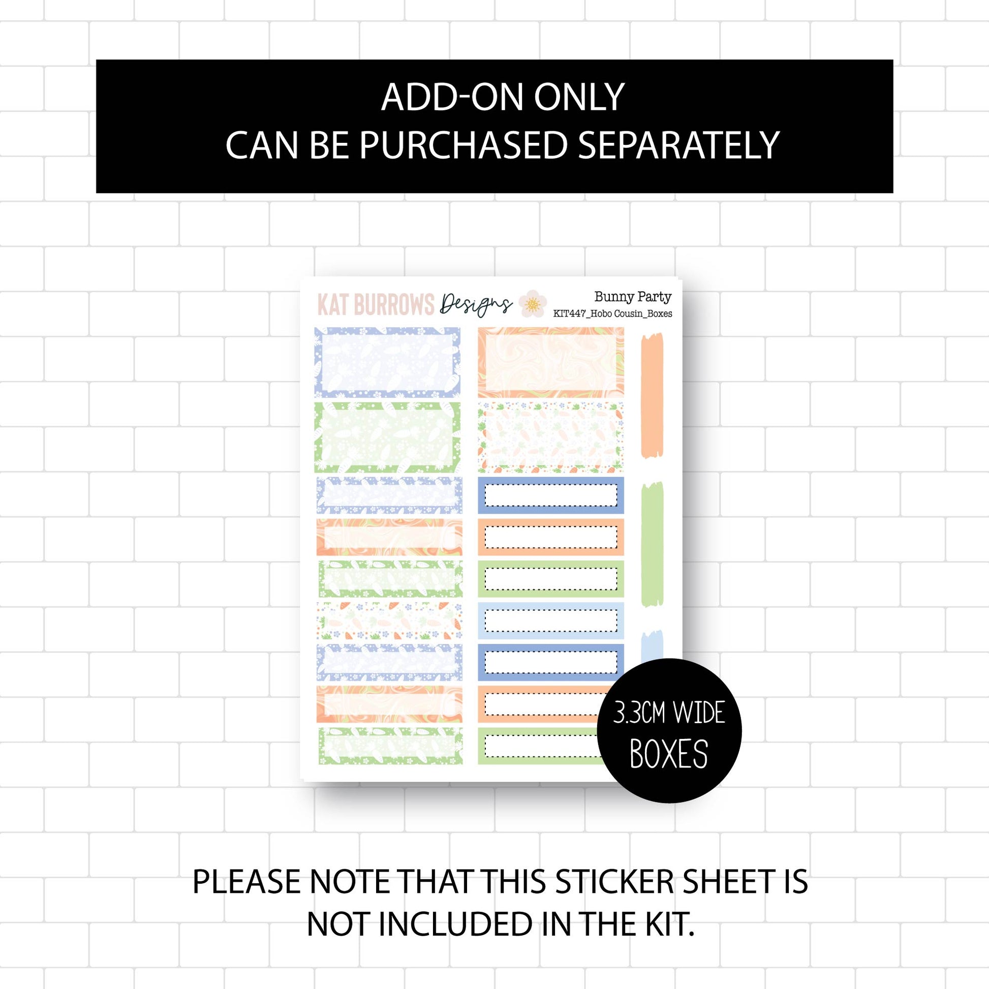 This Kit contains 1 sticker sheet. There is also an add-on option to purchase the Months of the Year Sticker Sheet and extra Boxes Sticker Sheet.