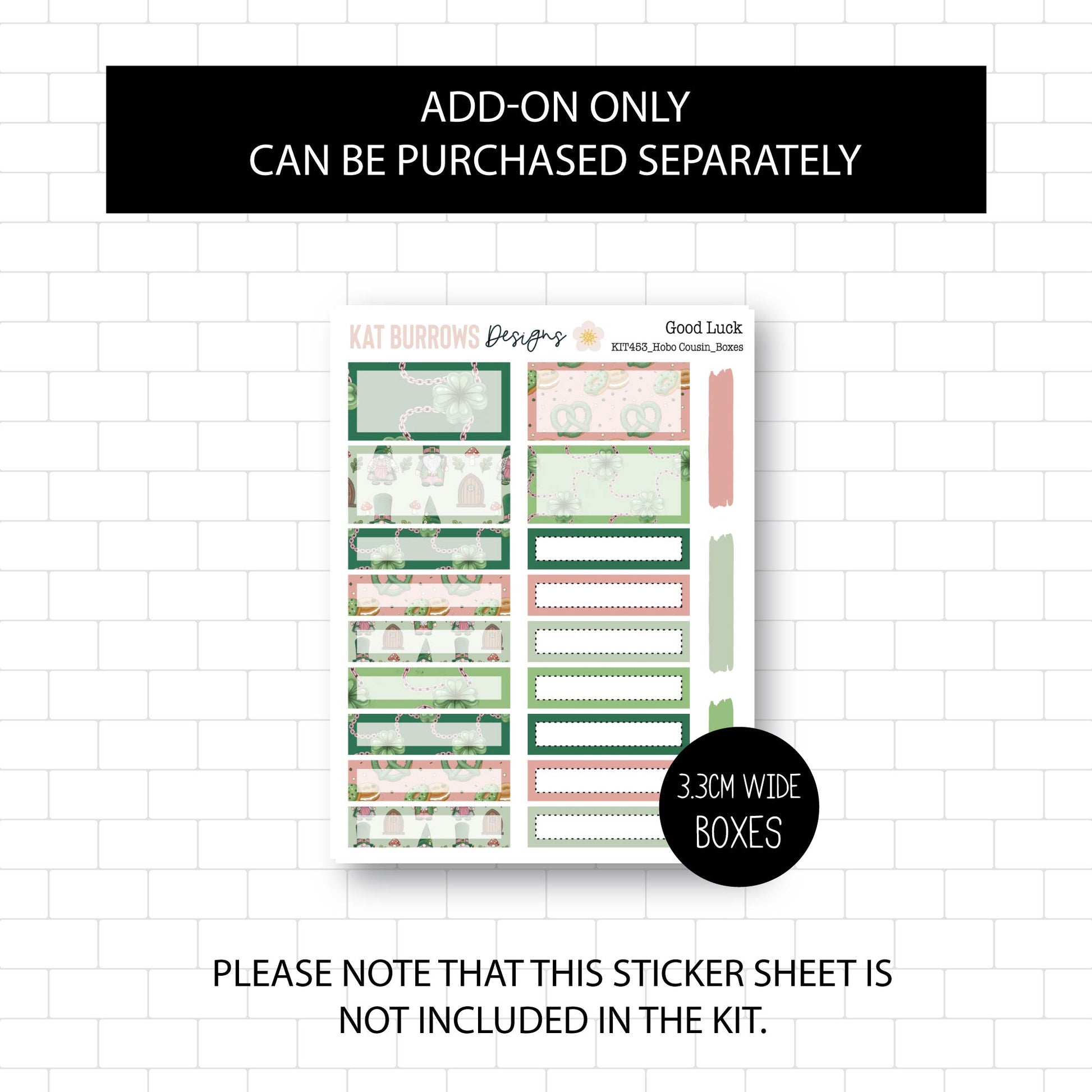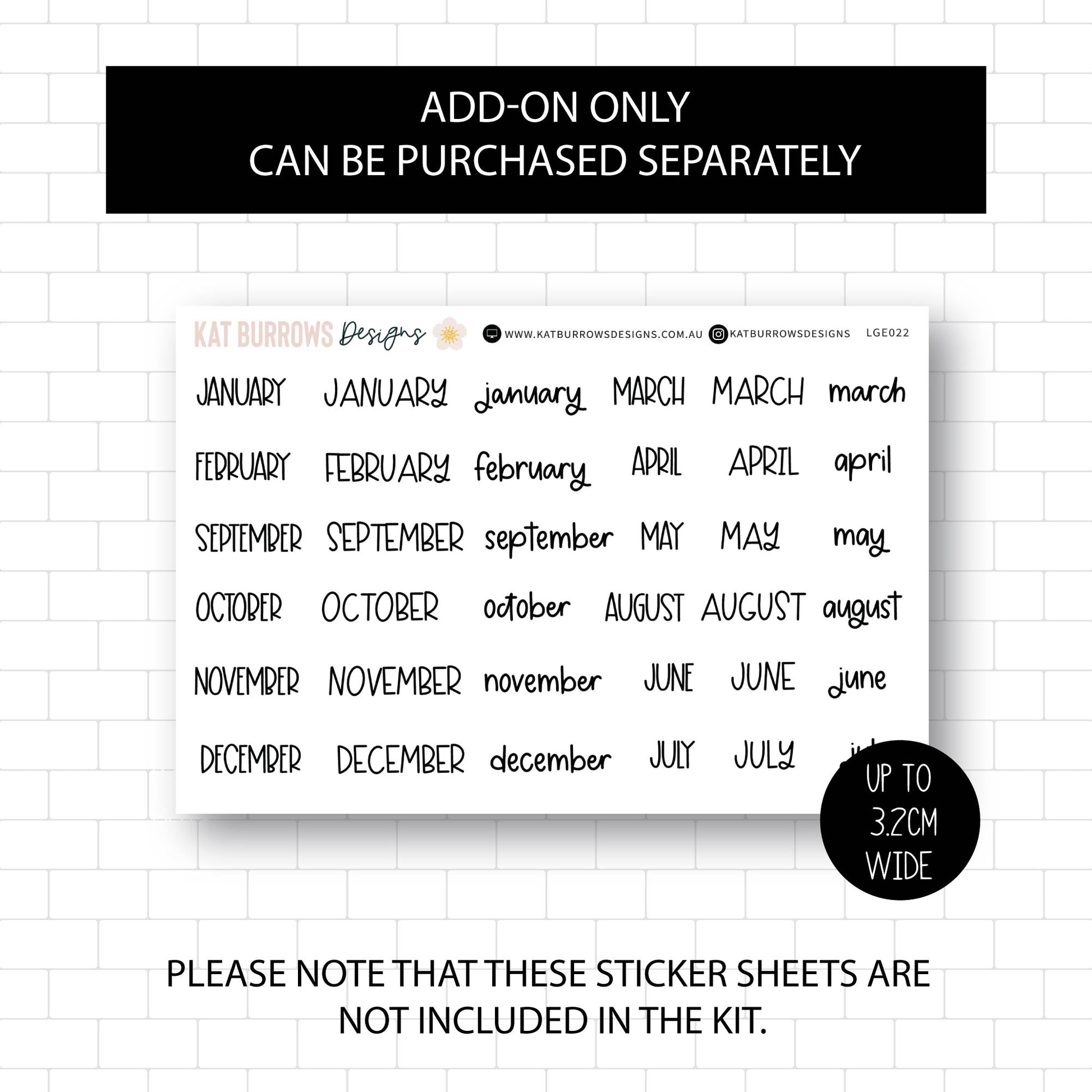 This Kit contains 1 sticker sheet. There is also an add-on option to purchase the Months of the Year Sticker Sheet and extra Boxes Sticker Sheet.