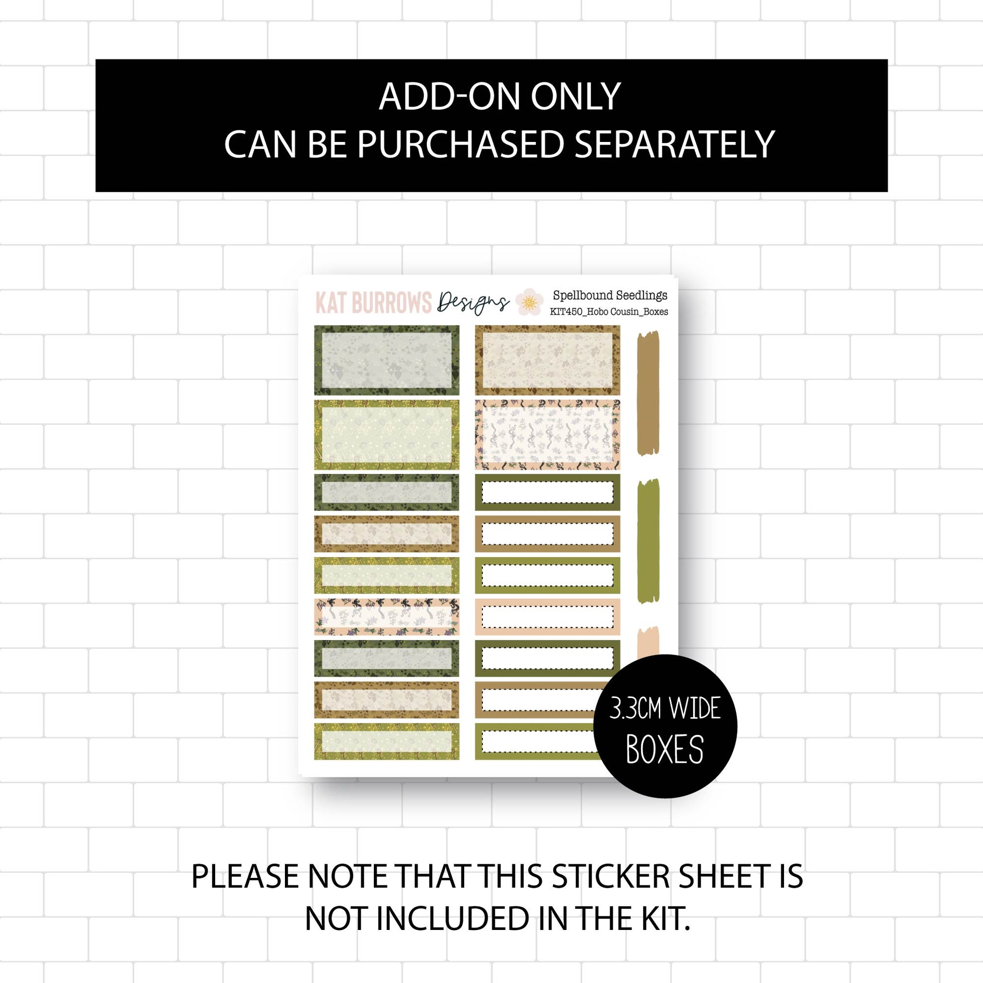 This Kit contains 1 sticker sheet. There is also an add-on option to purchase the Months of the Year Sticker Sheet and extra Boxes Sticker Sheet.