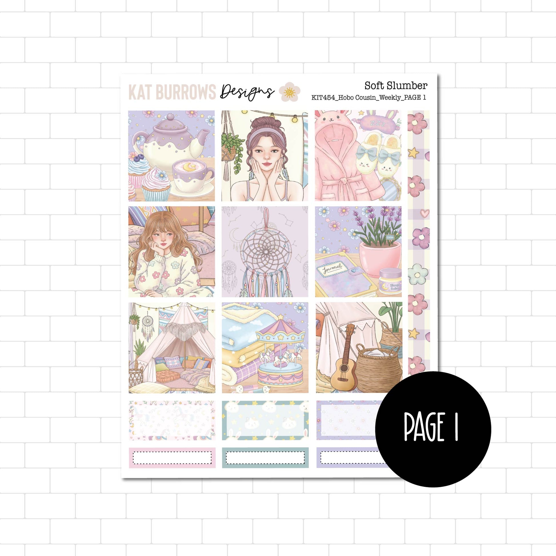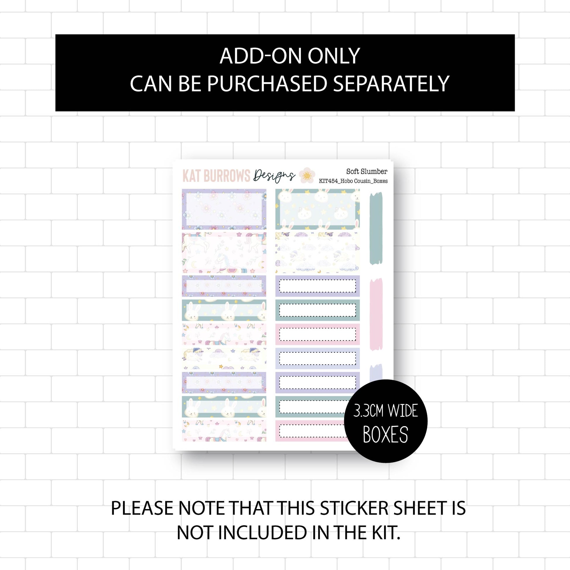 This Kit contains 2 sticker sheets with the option to purchase Page 1 or Page 2 on its own. There is also an option to purchase the Months of the Year Sticker Sheet and extra Boxes.