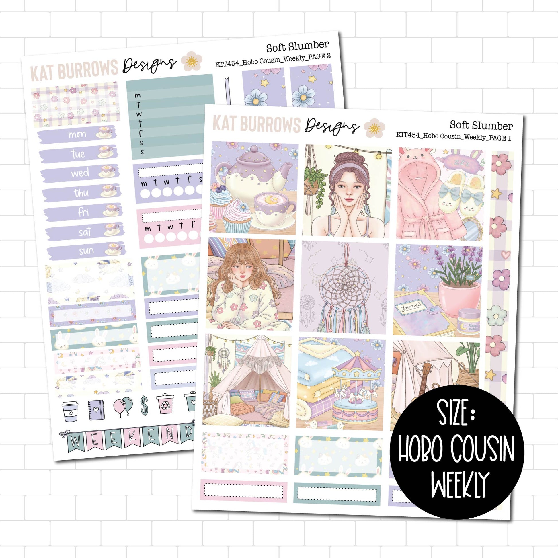 This 2 Page sticker kit fits the Hobonichi Cousin A5 (English). This is a weekly kit.