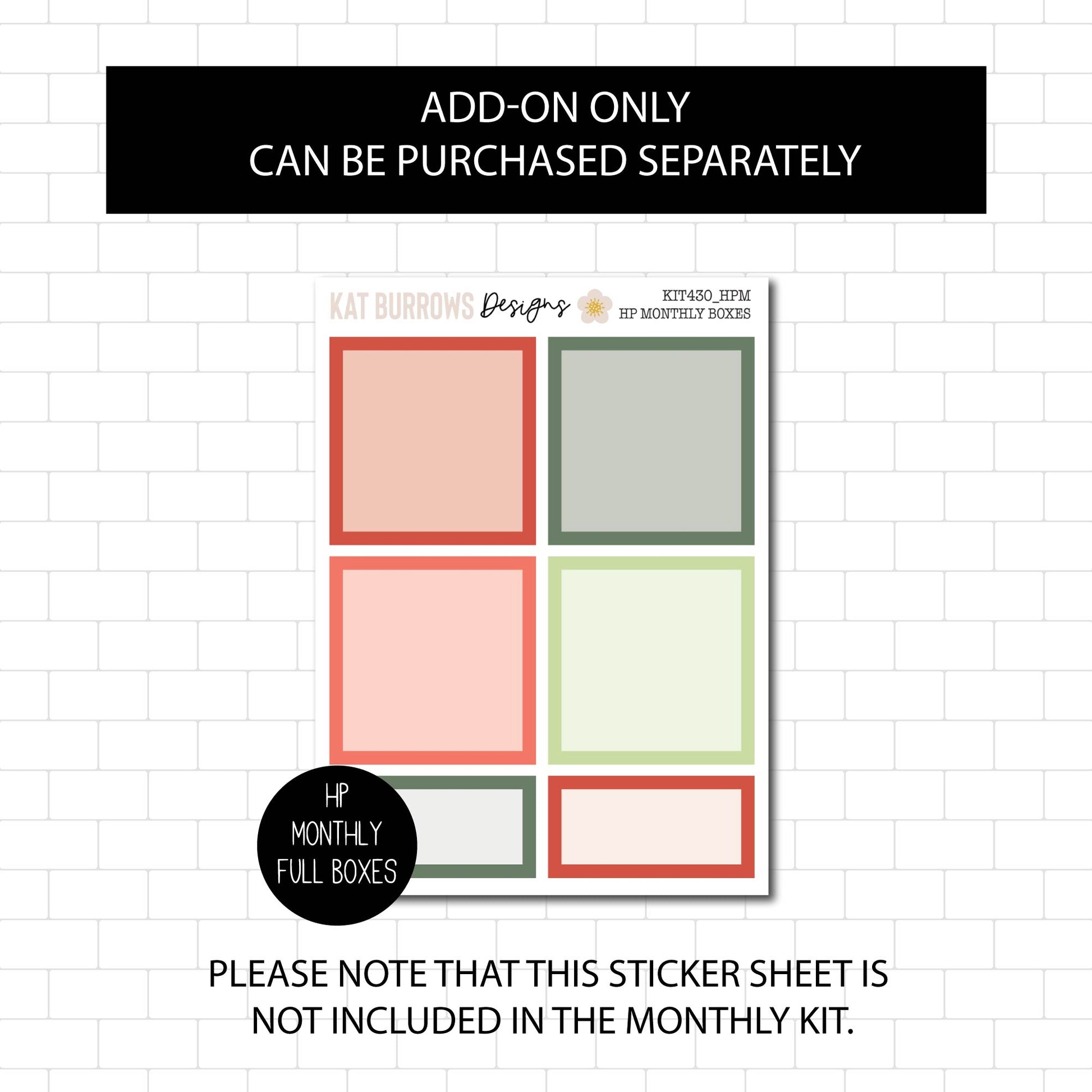 There is an option to purchase an add-on: HP Monthly Full Boxes (Matching colours to this kit). Top 4 Boxes are the same size as the beautiful Full Boxes in this kit.