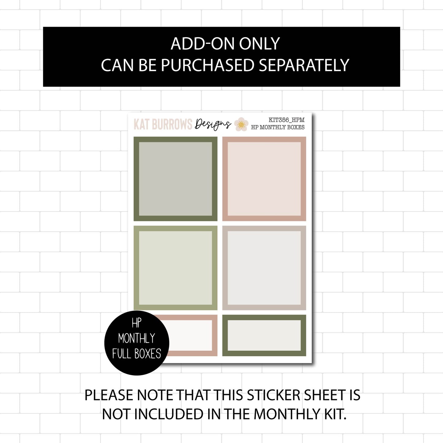 There is an option to purchase an add-on: HP Monthly Full Boxes (Matching colours to this kit). Top 4 Boxes are the same size as the beautiful Full Boxes in this kit.