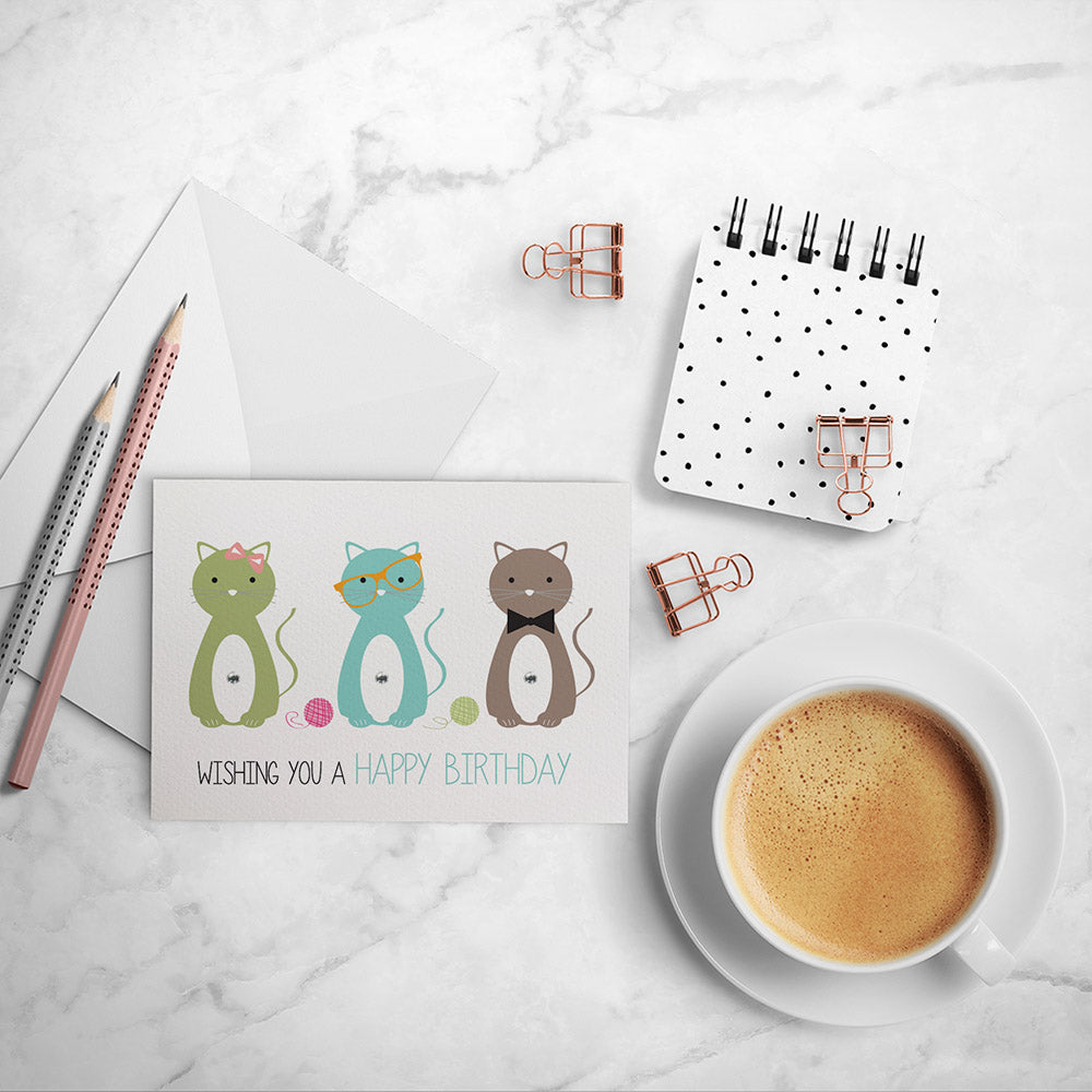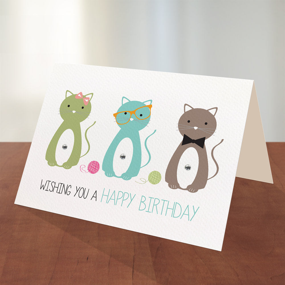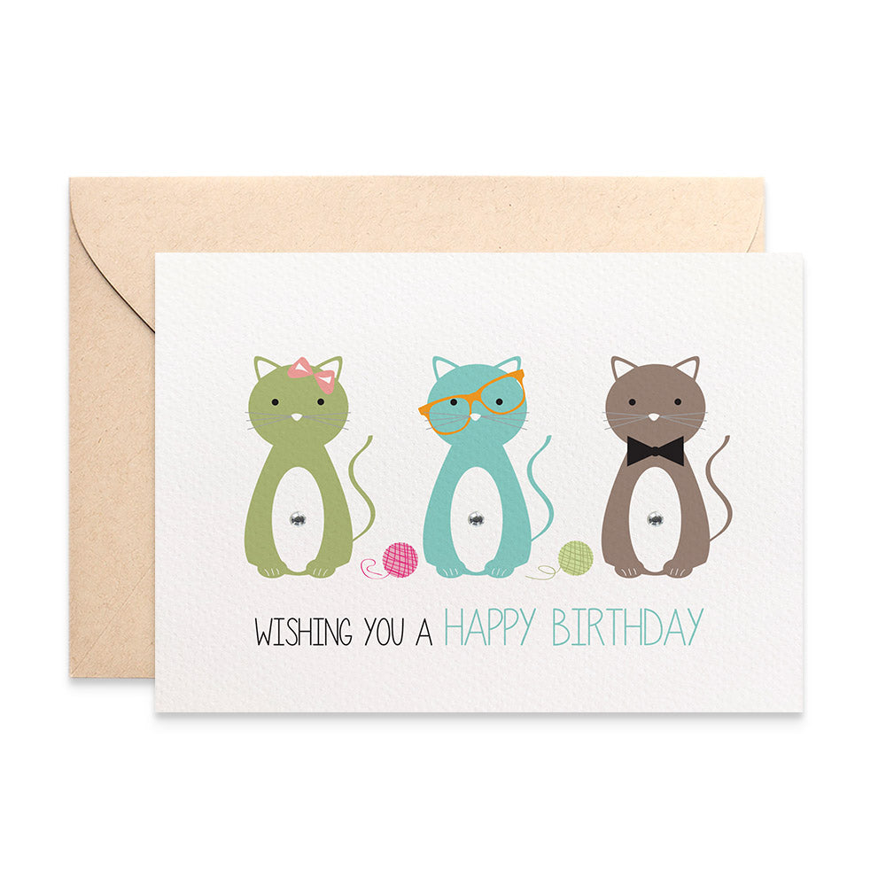 A bright handmade Birthday Female Card featuring 3 Kitty Cats for the Cat Lovers and the words Wishing you a very Happy Birthday. A beautiful greeting card to give to your daughters, nieces, cousins, mums, aunties etc.