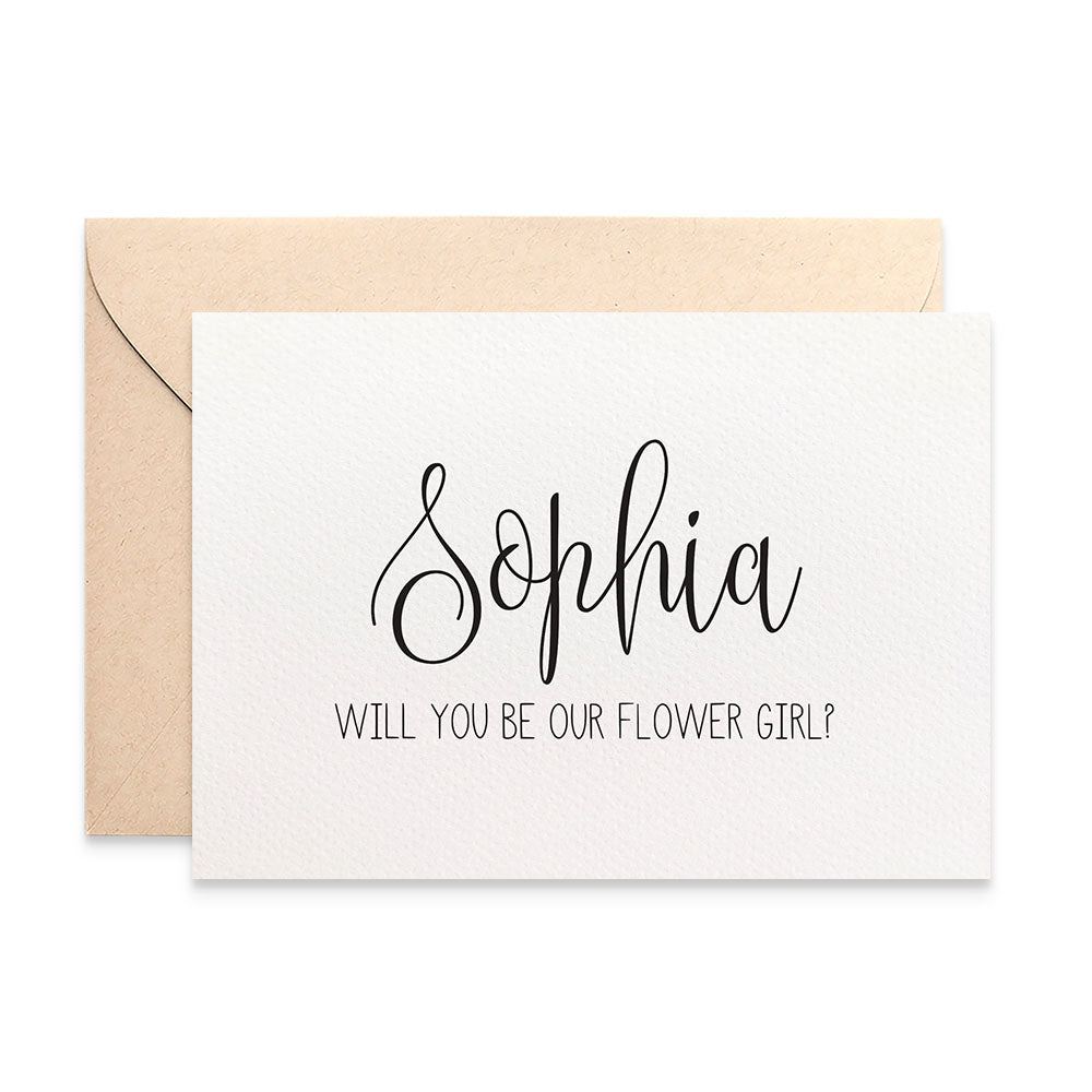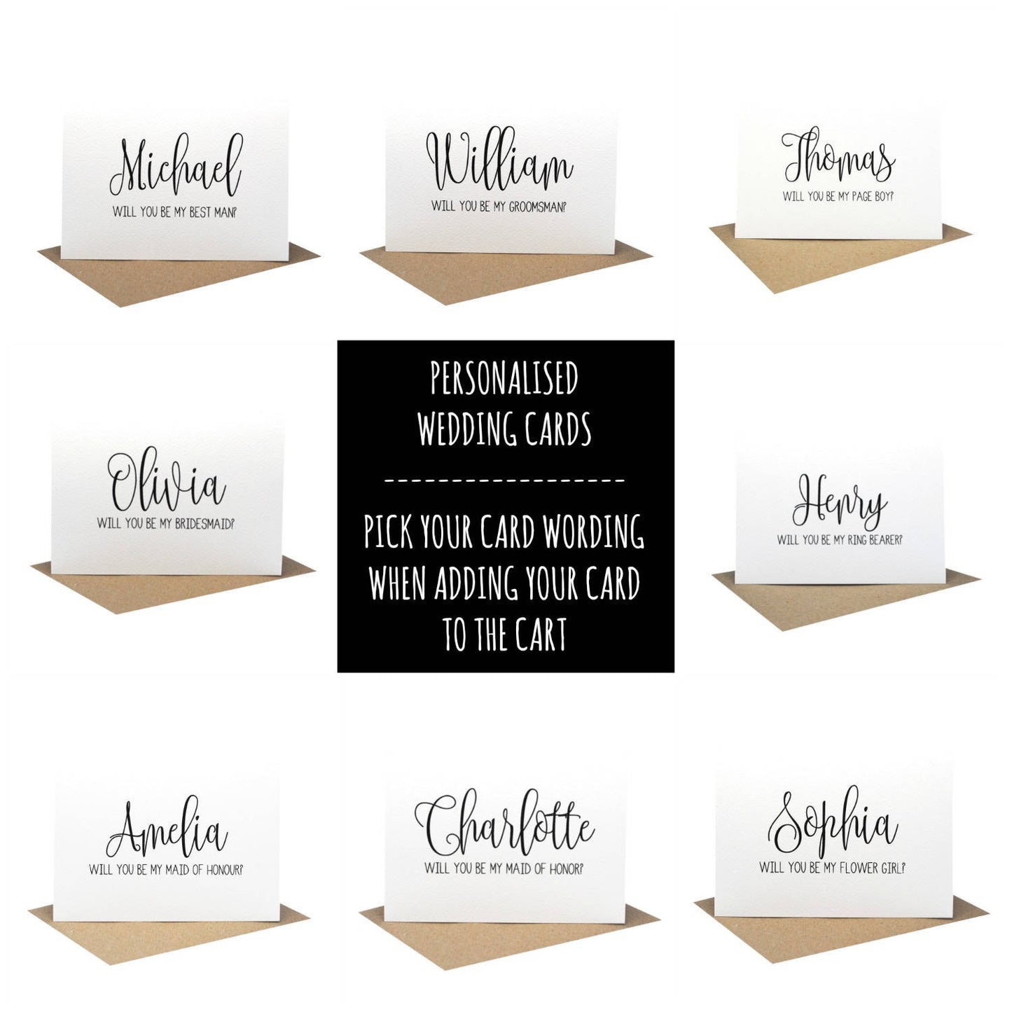 A stylish Personalised {NAME} Will you be my {INSERT WORD OPTION}? Handmade Wedding Card featuring a beautiful script font for that very special occasion.