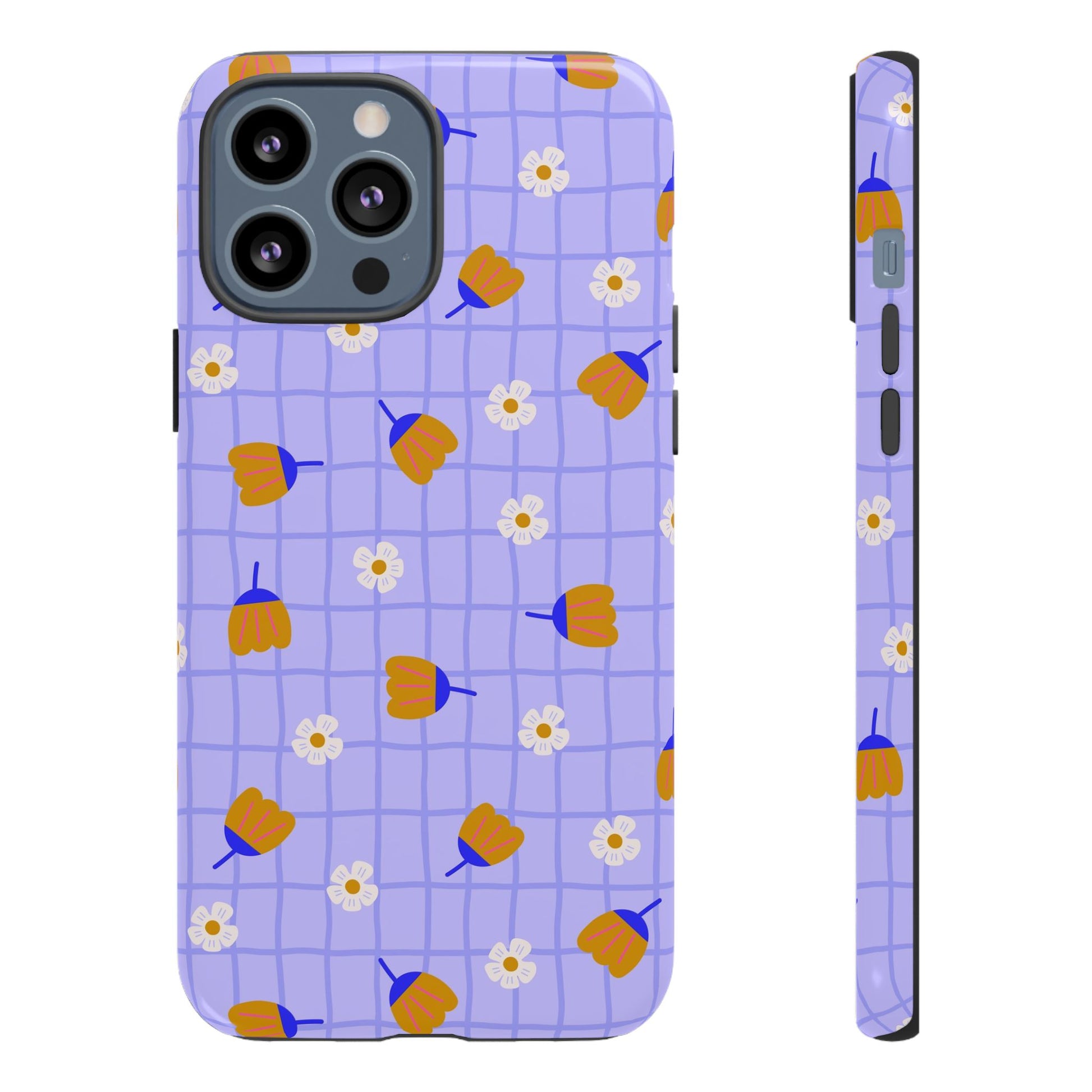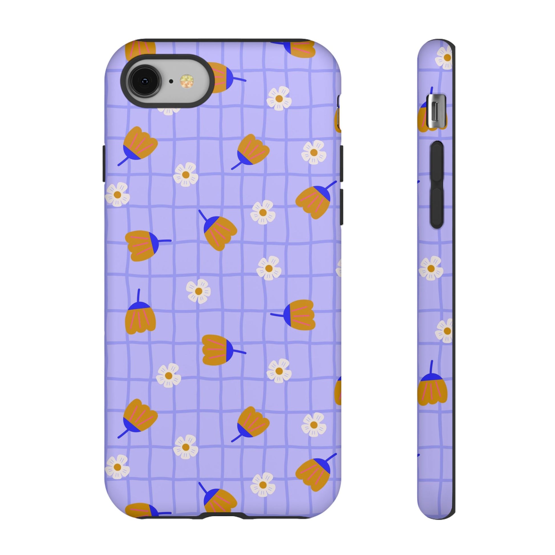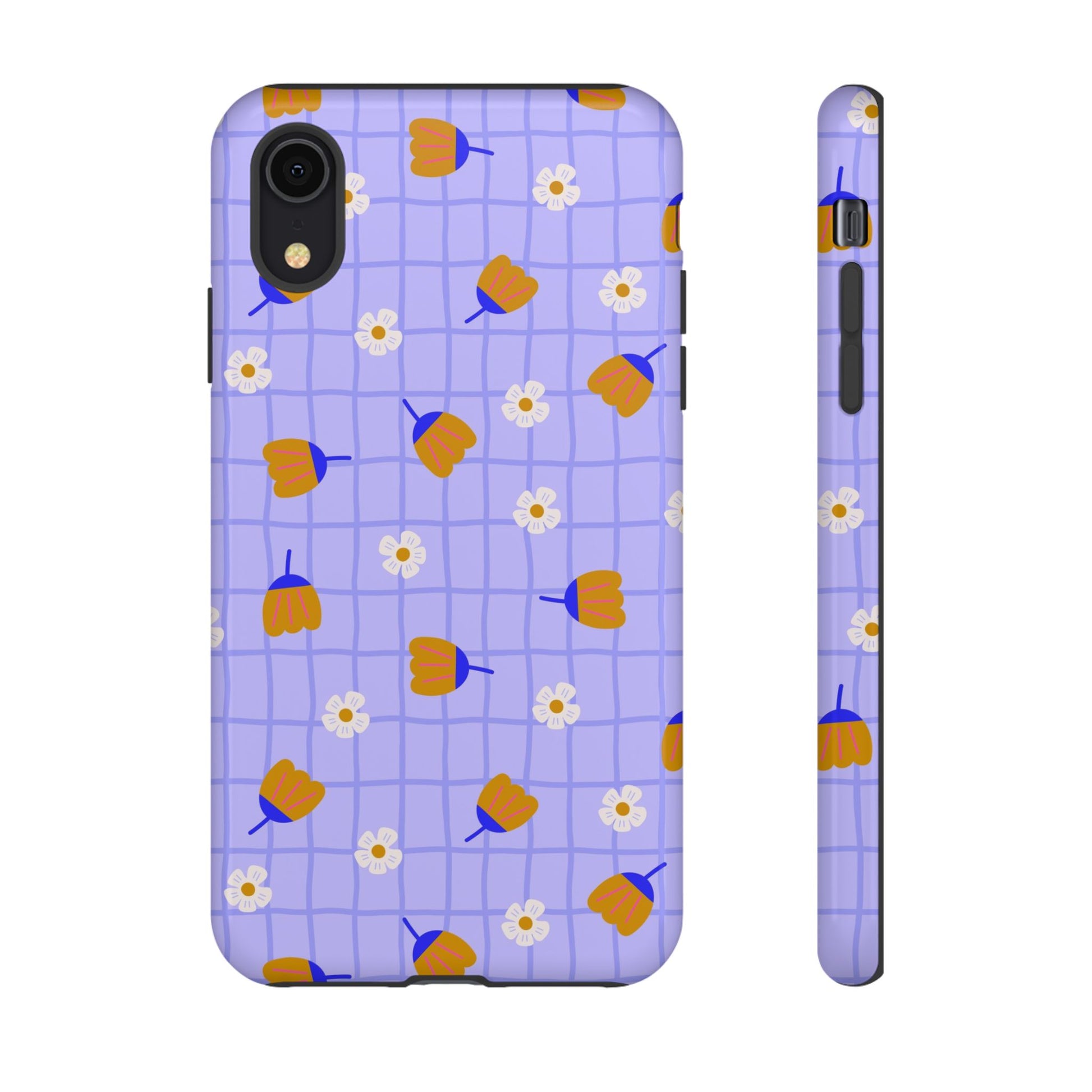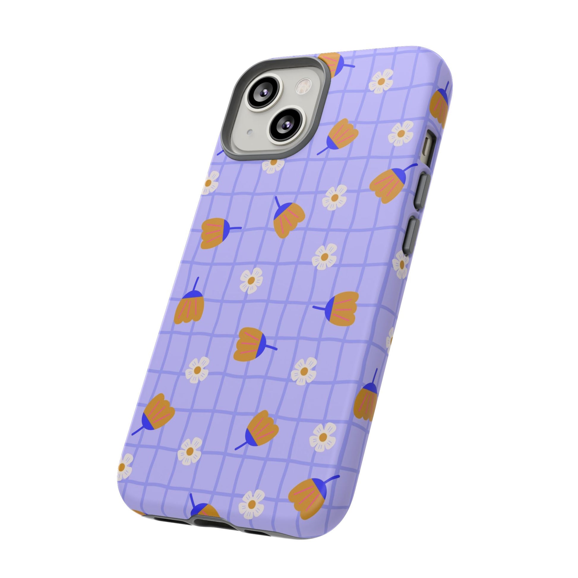 Phone Case: Flowers on Lilac Grid