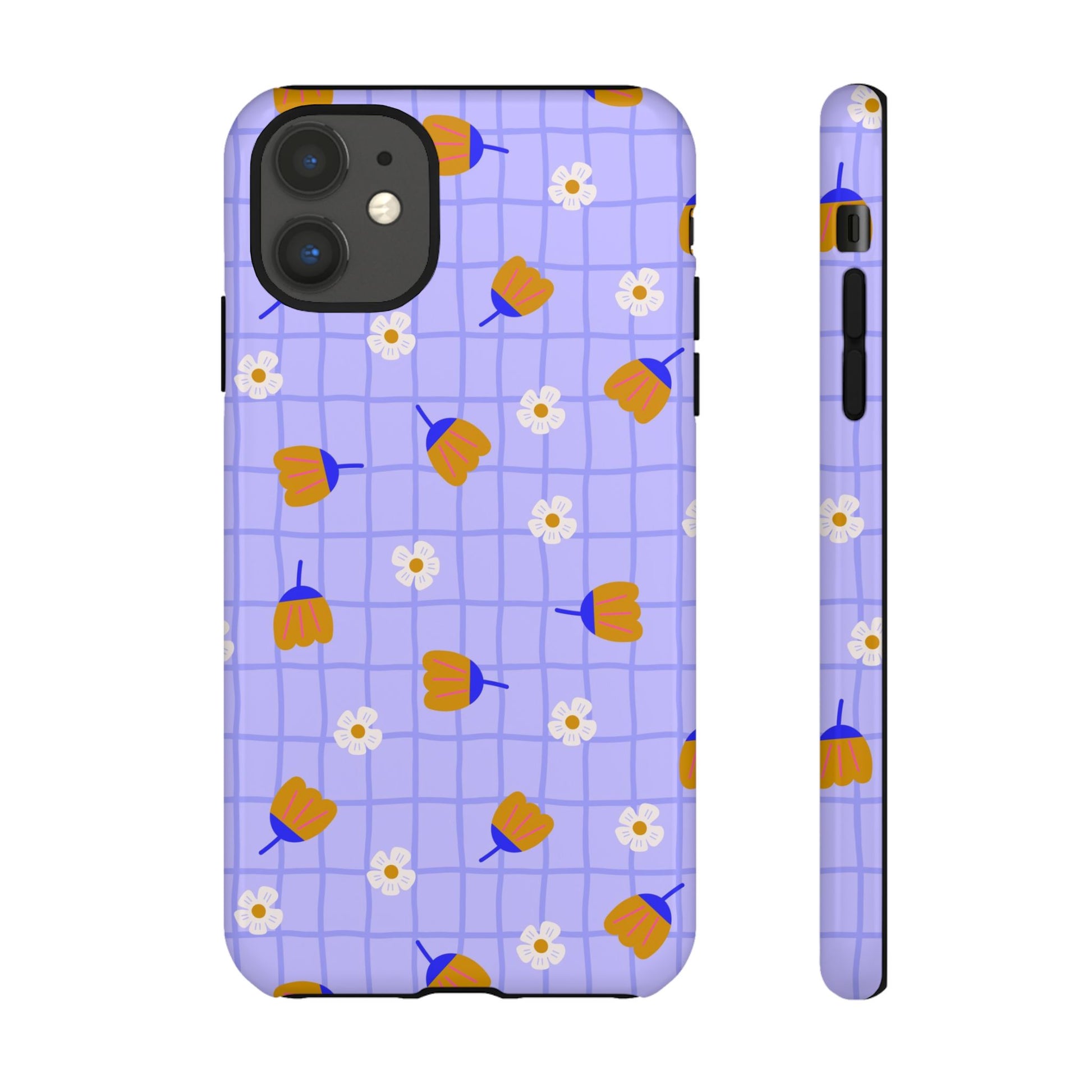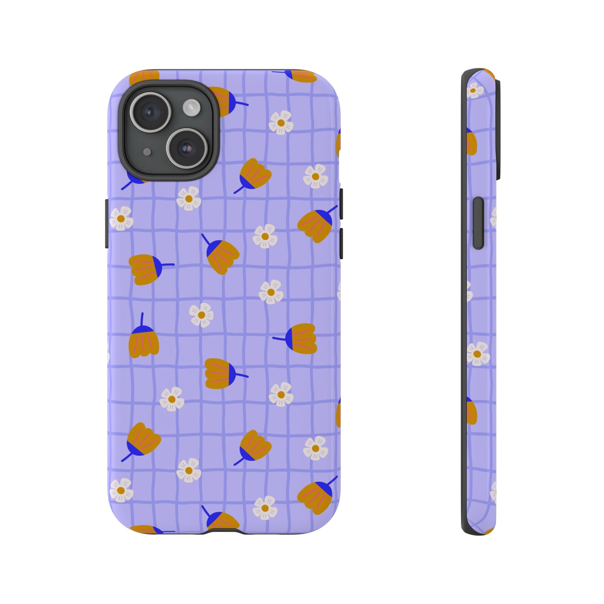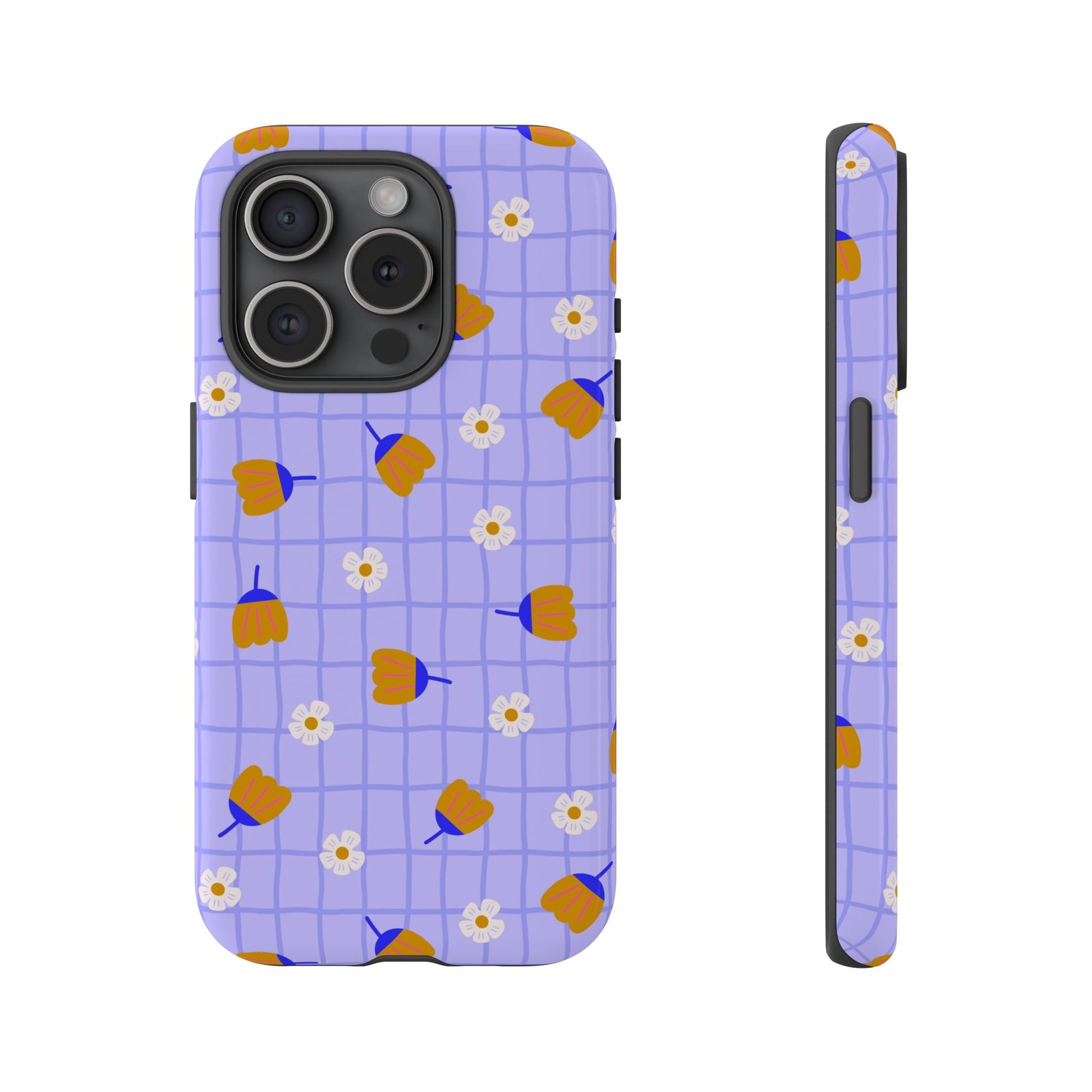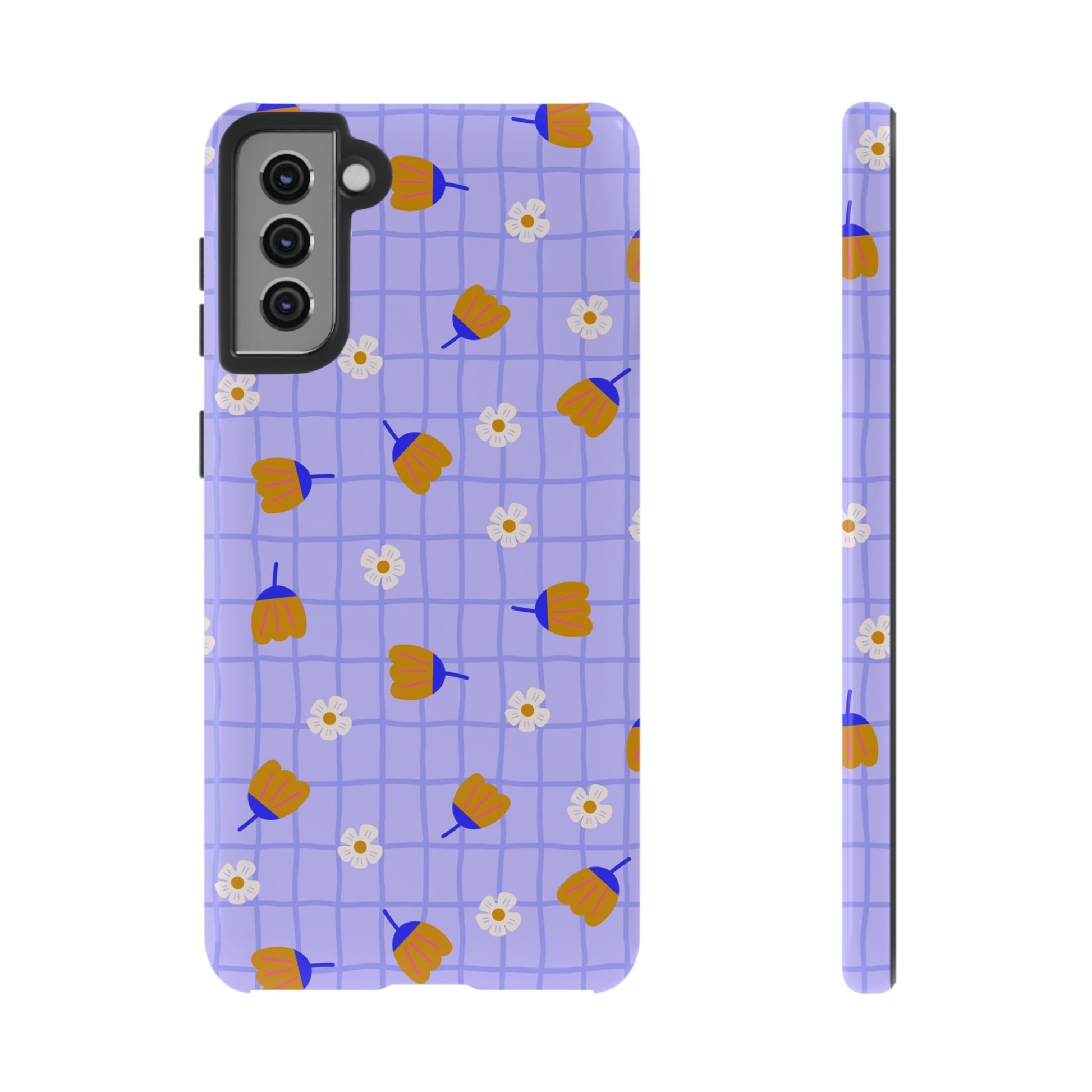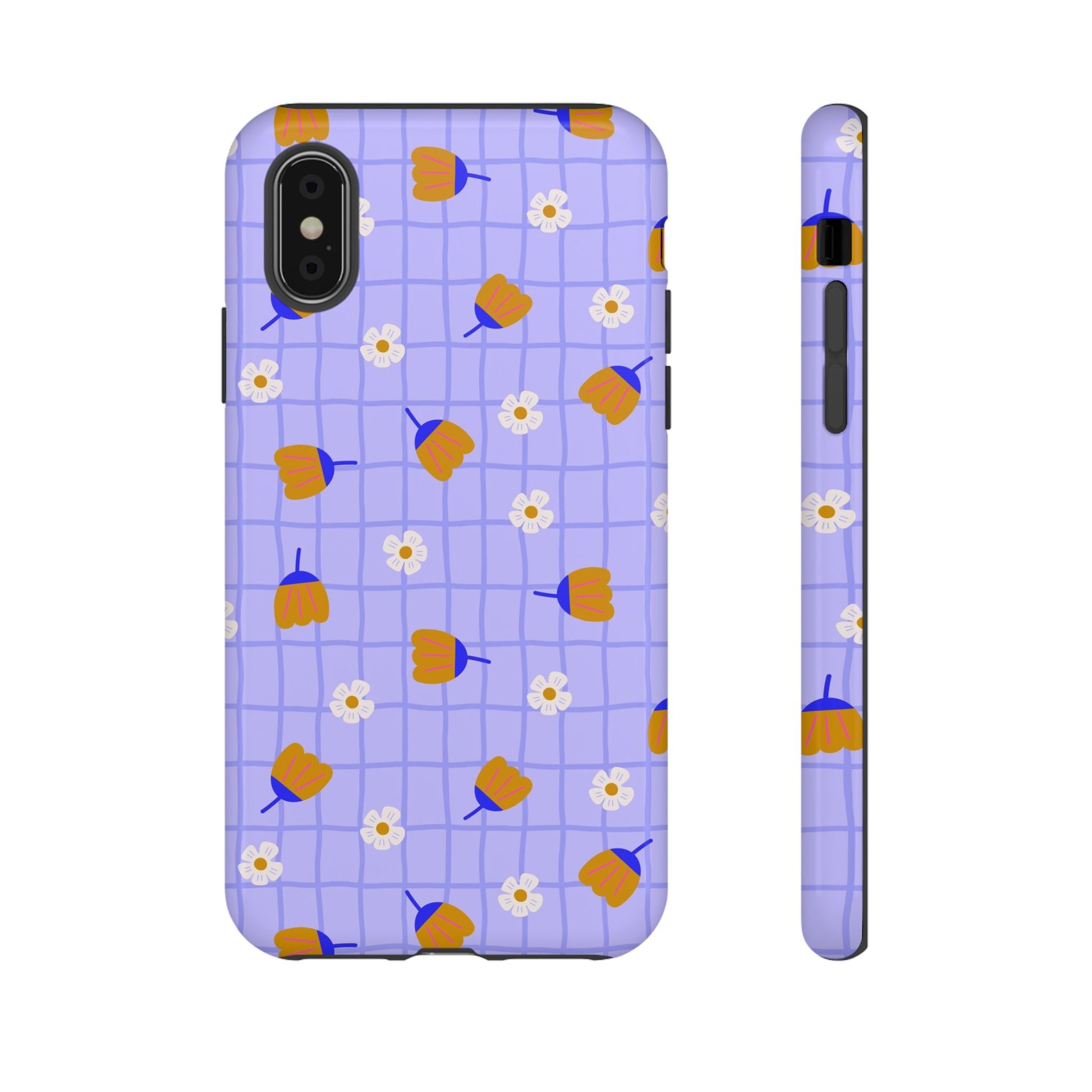 Phone Case: Flowers on Lilac Grid