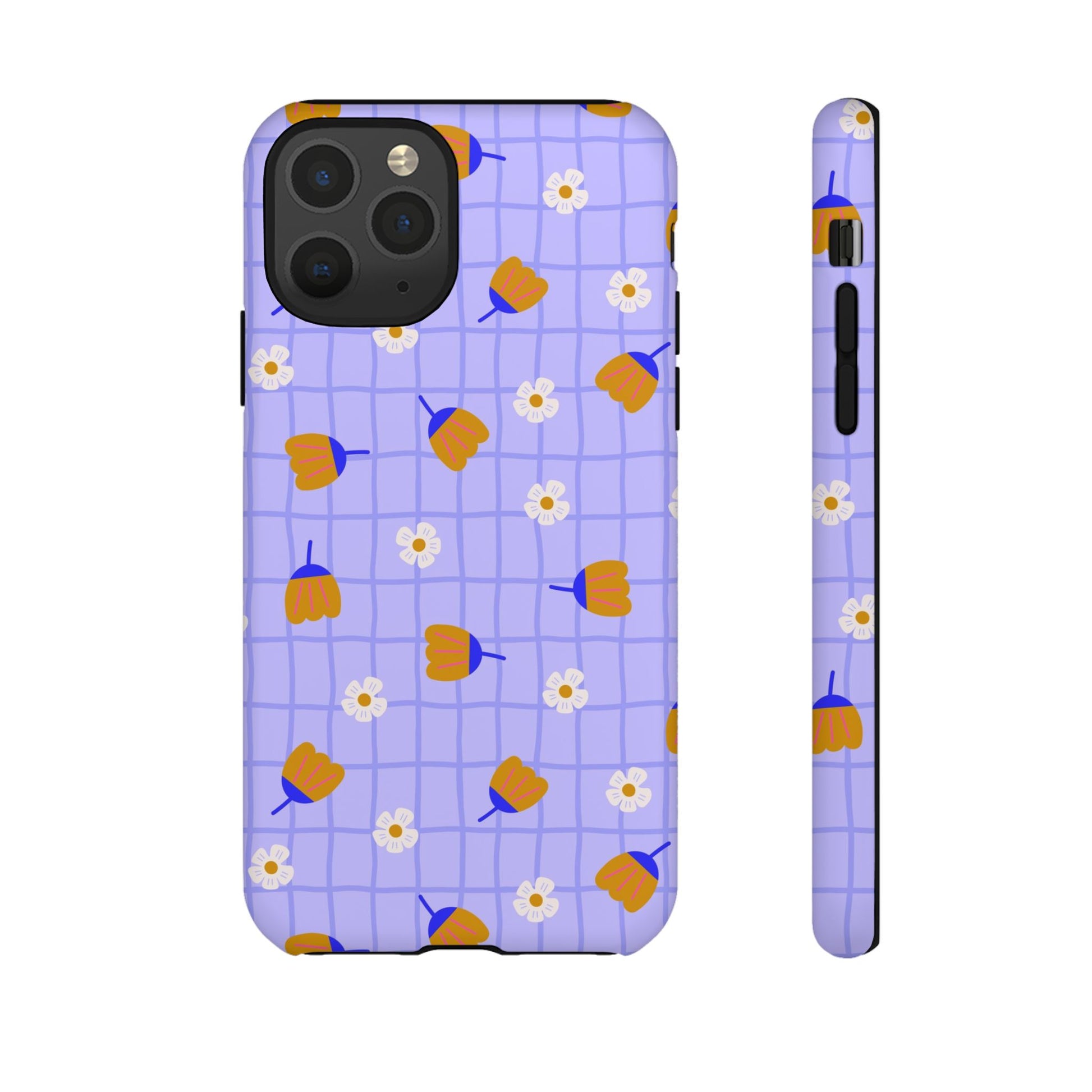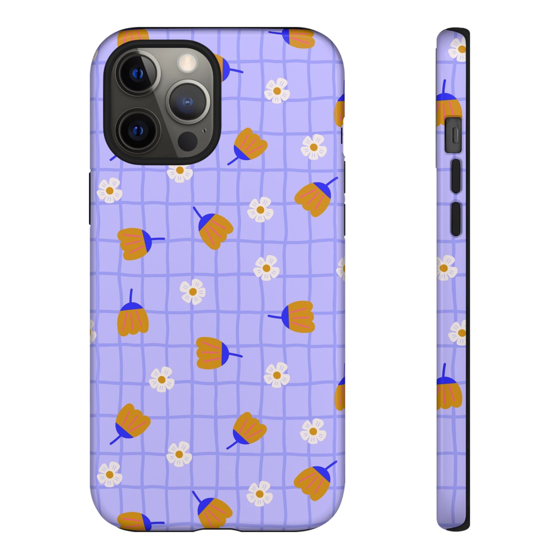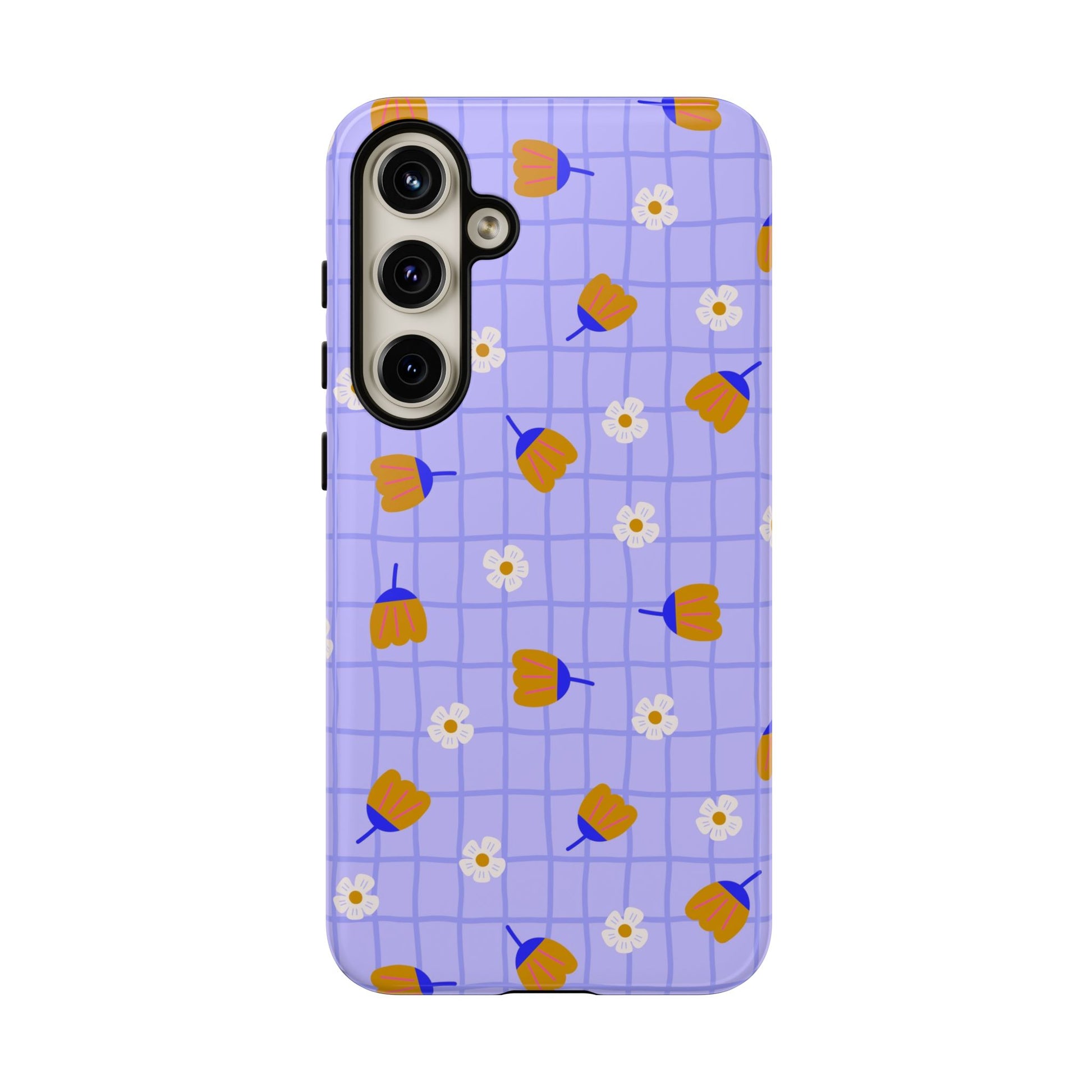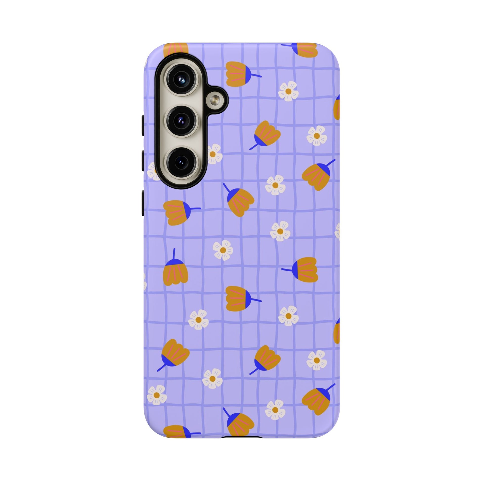 Phone Case: Flowers on Lilac Grid