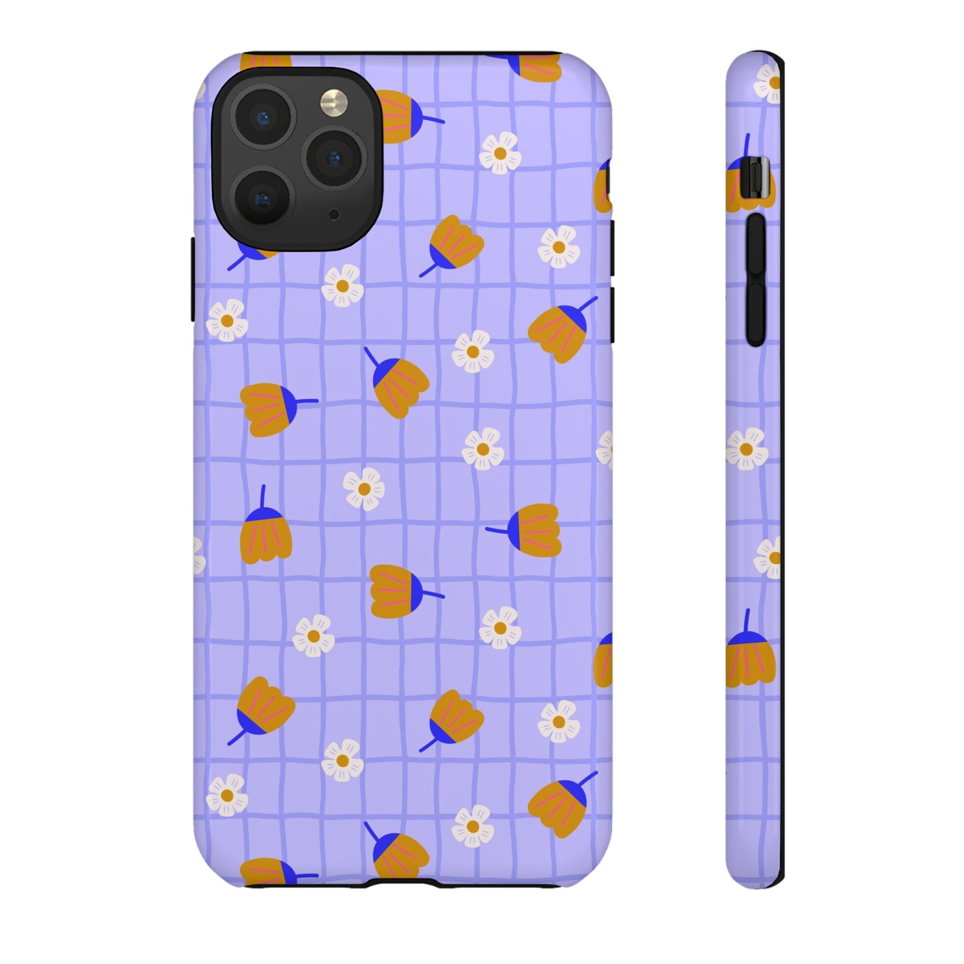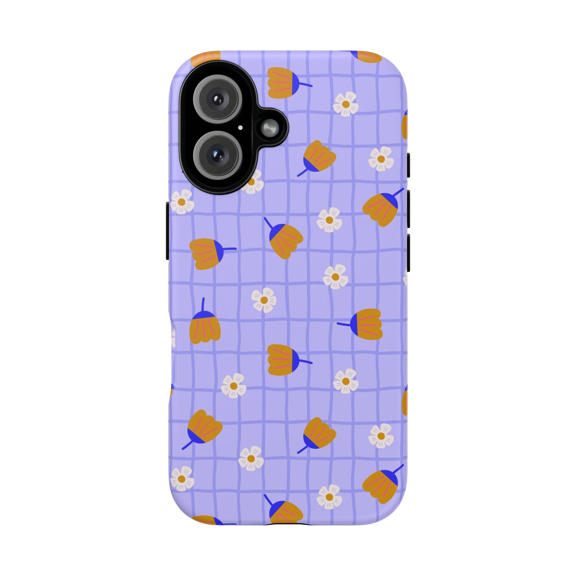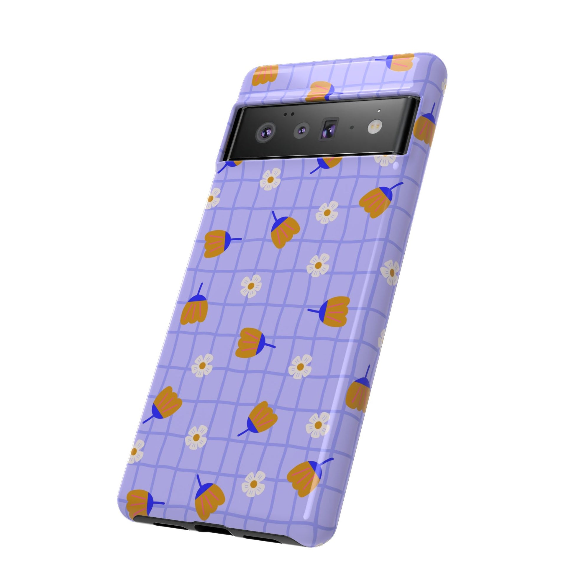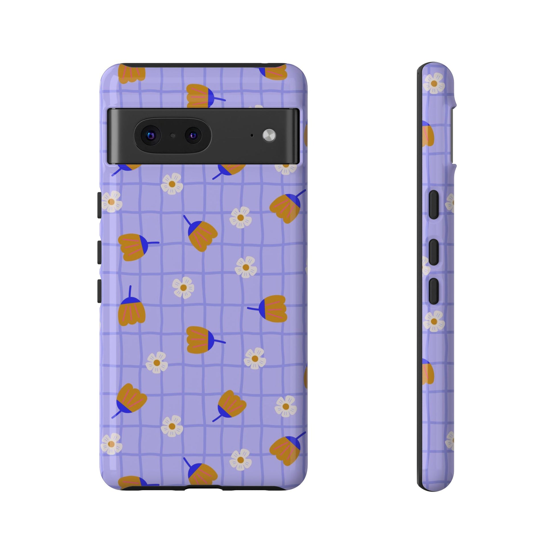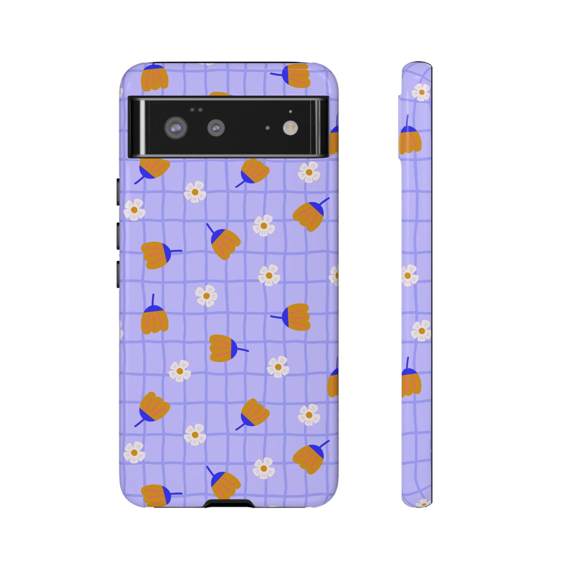 Phone Case: Flowers on Lilac Grid