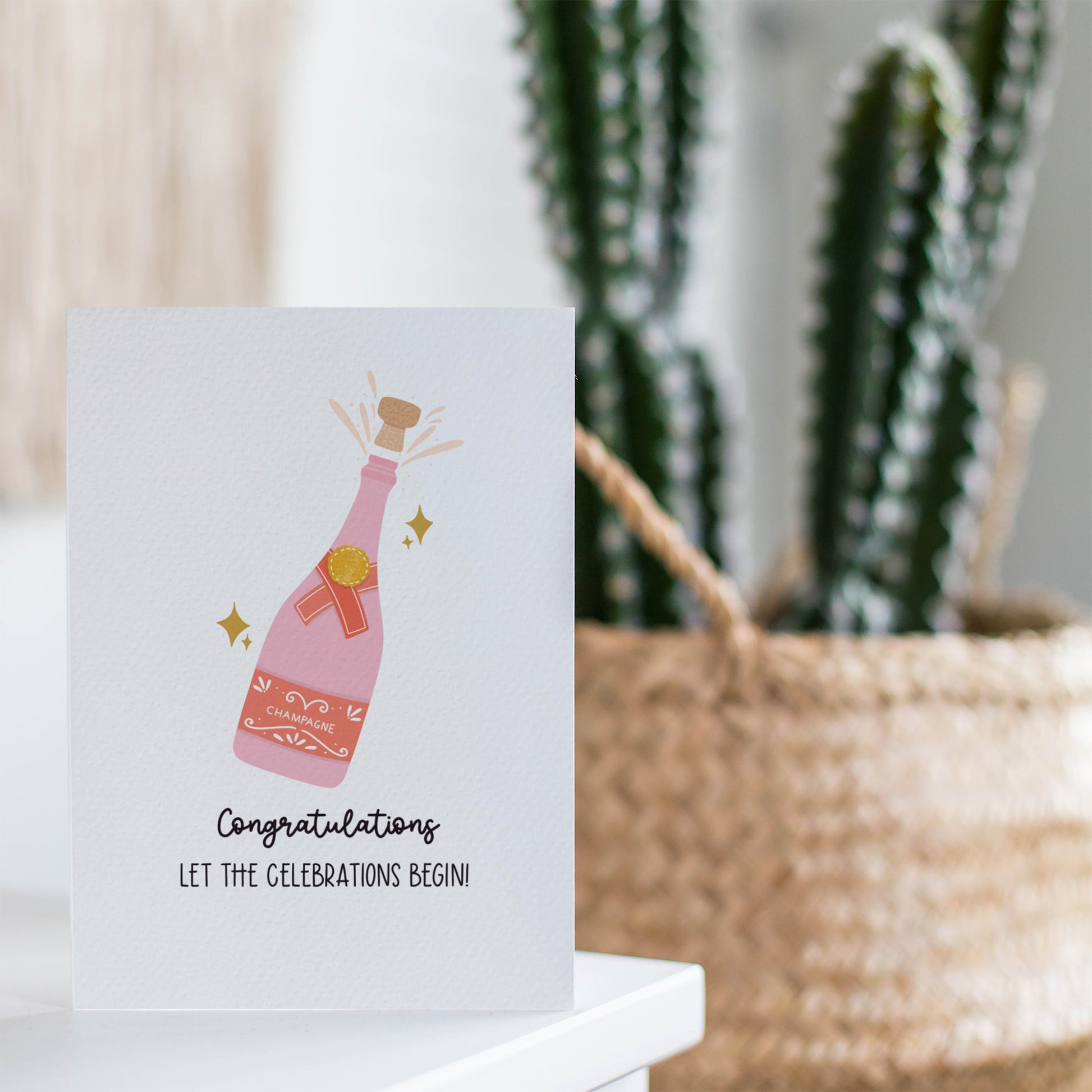 Congratulations, Let the Celebrations Begin! Add a pop of fun to their special day with this illustrated greeting card, featuring a pink champagne bottle popping open in celebration. Perfect for birthdays, milestone moments or anyone who loves a little sparkle, it’s a joyful way to mark the occasion. Illustrated by me (Kat) in my Sunshine Coast studio.