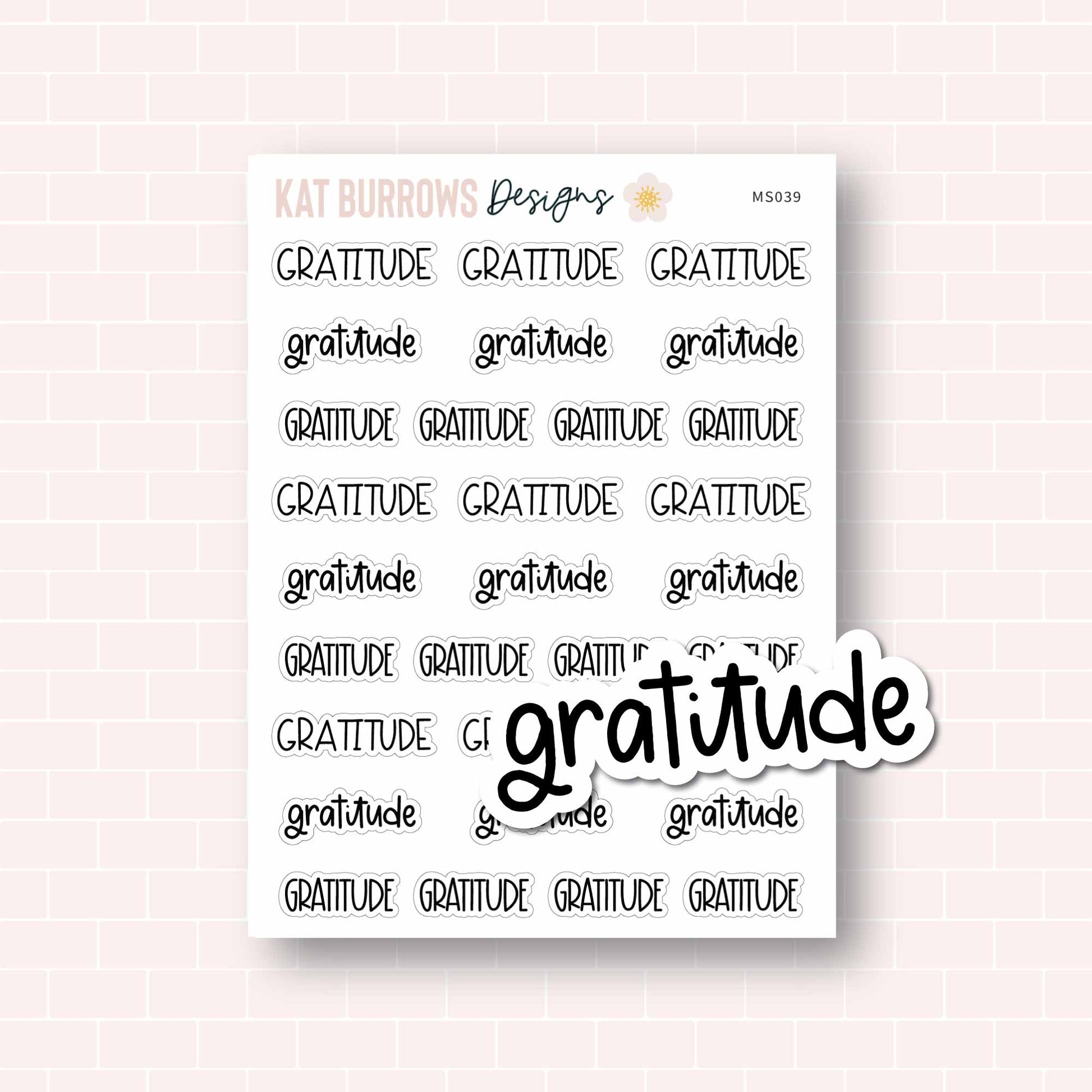 Gratitude Script planner stickers to use in Planners and Calendars. These word script stickers are perfect for the Erin Condren, Happy Planner, Lime Weekly planners and more.