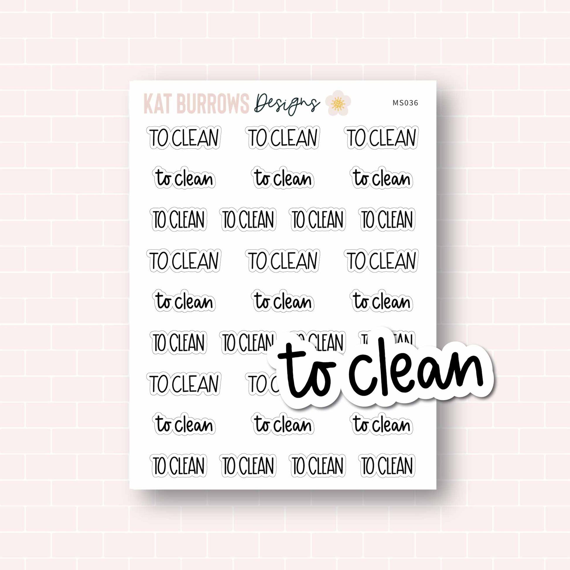 To Clean Script planner stickers to use in Planners and Calendars. These word script stickers are perfect for the Erin Condren, Happy Planner, Lime Weekly planners and more.