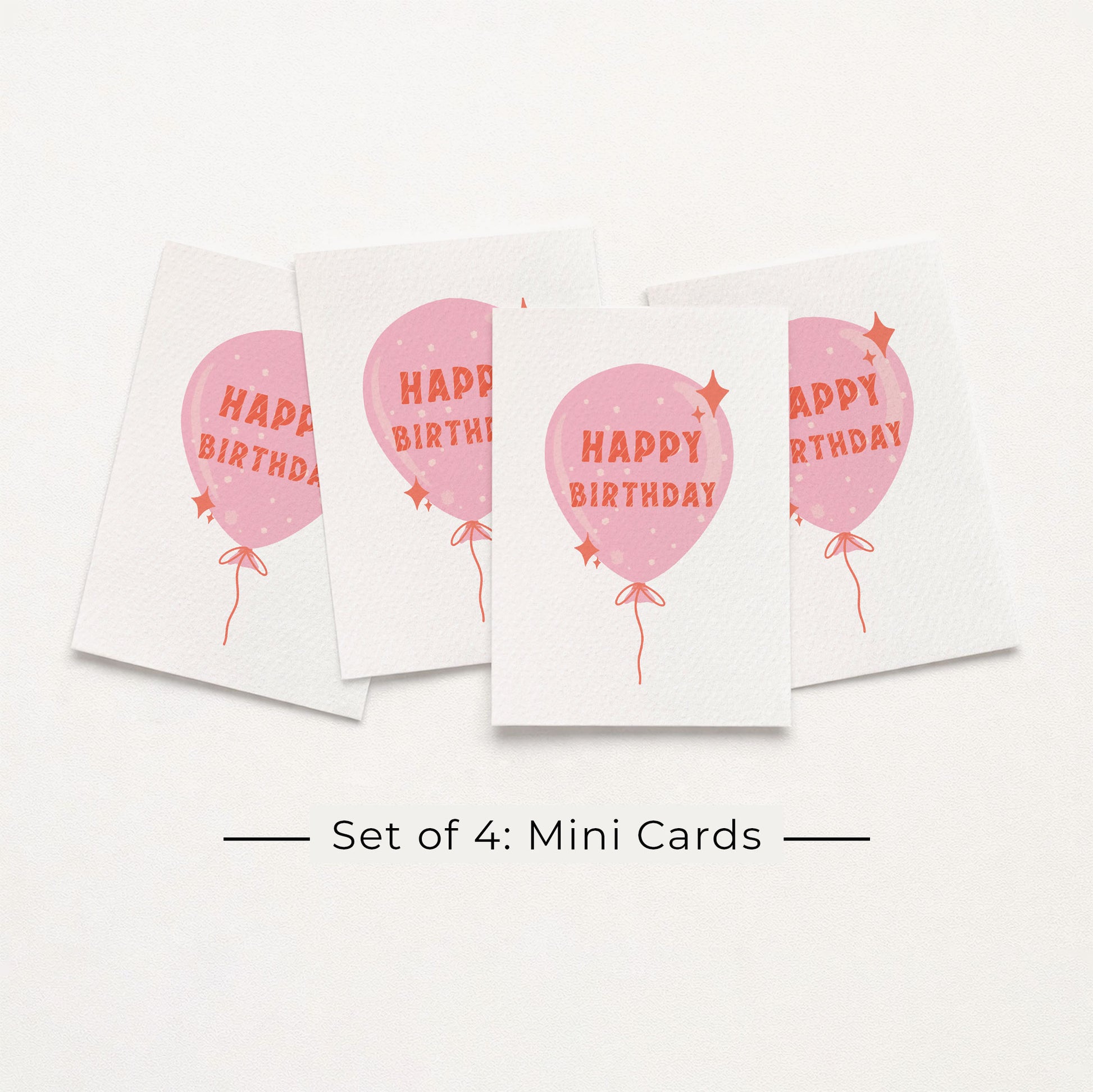 Set of 4: MINI Cards: Pink Birthday Balloon