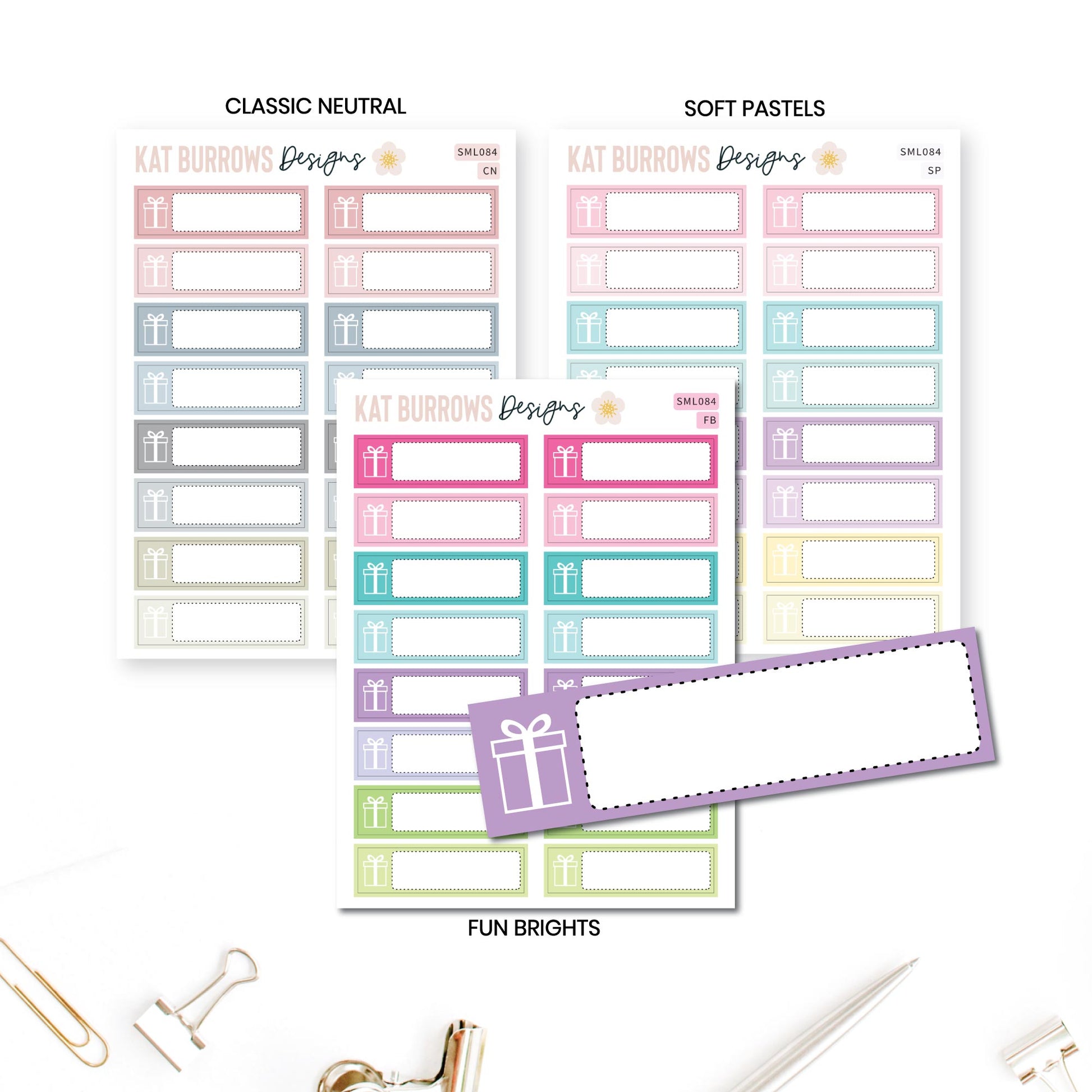 Stylish and cute birthday header planner stickers featuring a birthday present and a place to write the birthday persons name. These stickers are perfect for planners such as Erin Condren, The Happy Planner, Kikki K etc.