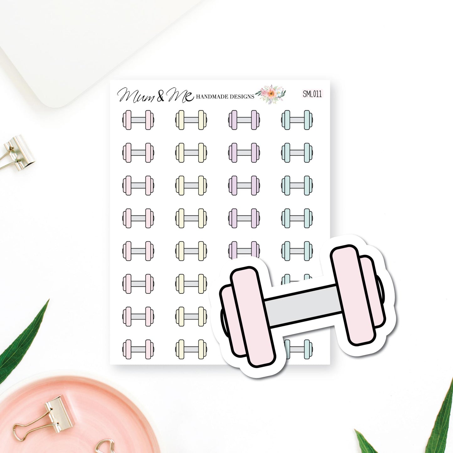 Fun stylish planner stickers featuring dumbbells for planning gym workouts in your planner. These stickers are perfect for planners such as Erin Condren, The Happy Planner, Kikki K etc.