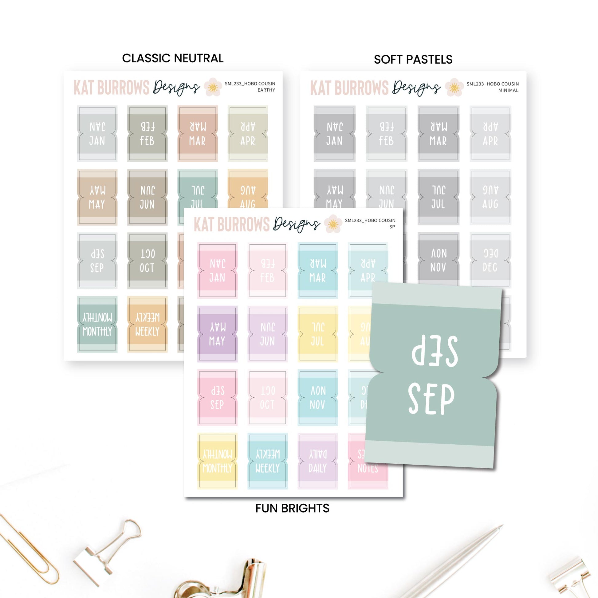 These tab stickers are designed to fit planners such as the Hobonichi Weeks and Cousin Planners.