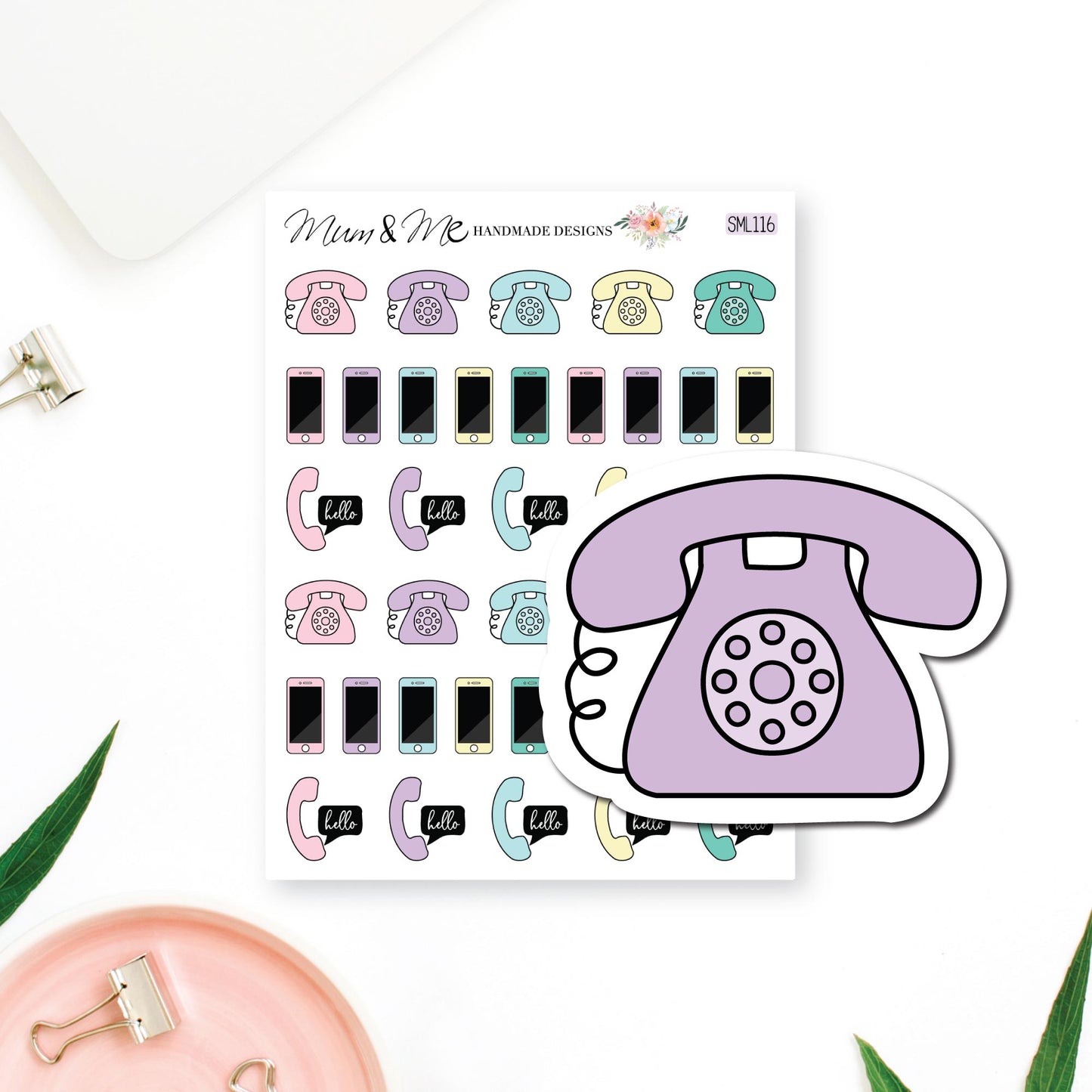 Beautiful and stylish planner stickers featuring assorted phone call icons in assorted pastel colours. . These stickers are perfect for planners such as Erin Condren, Happy Planner, Kikki K etc.
