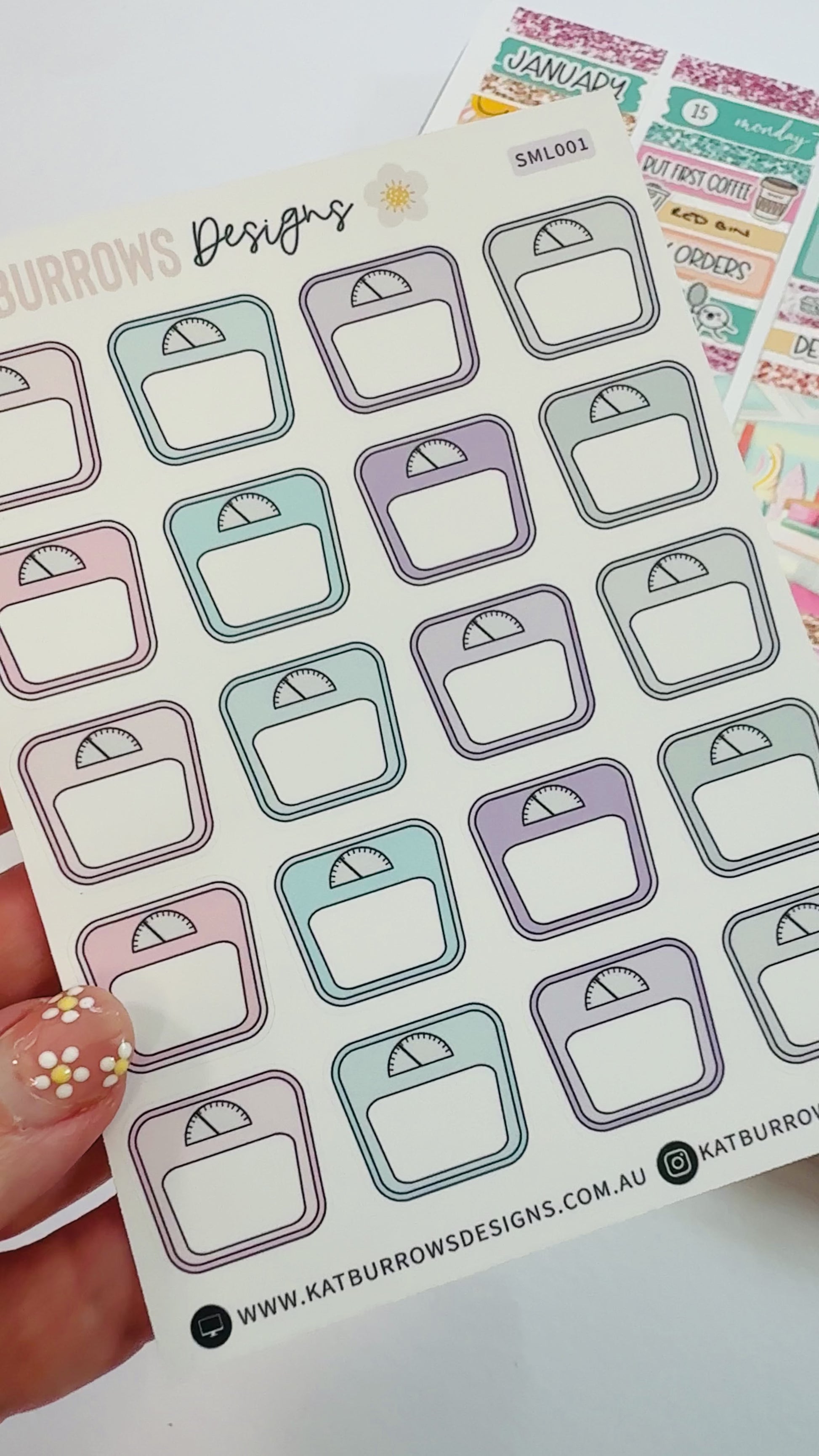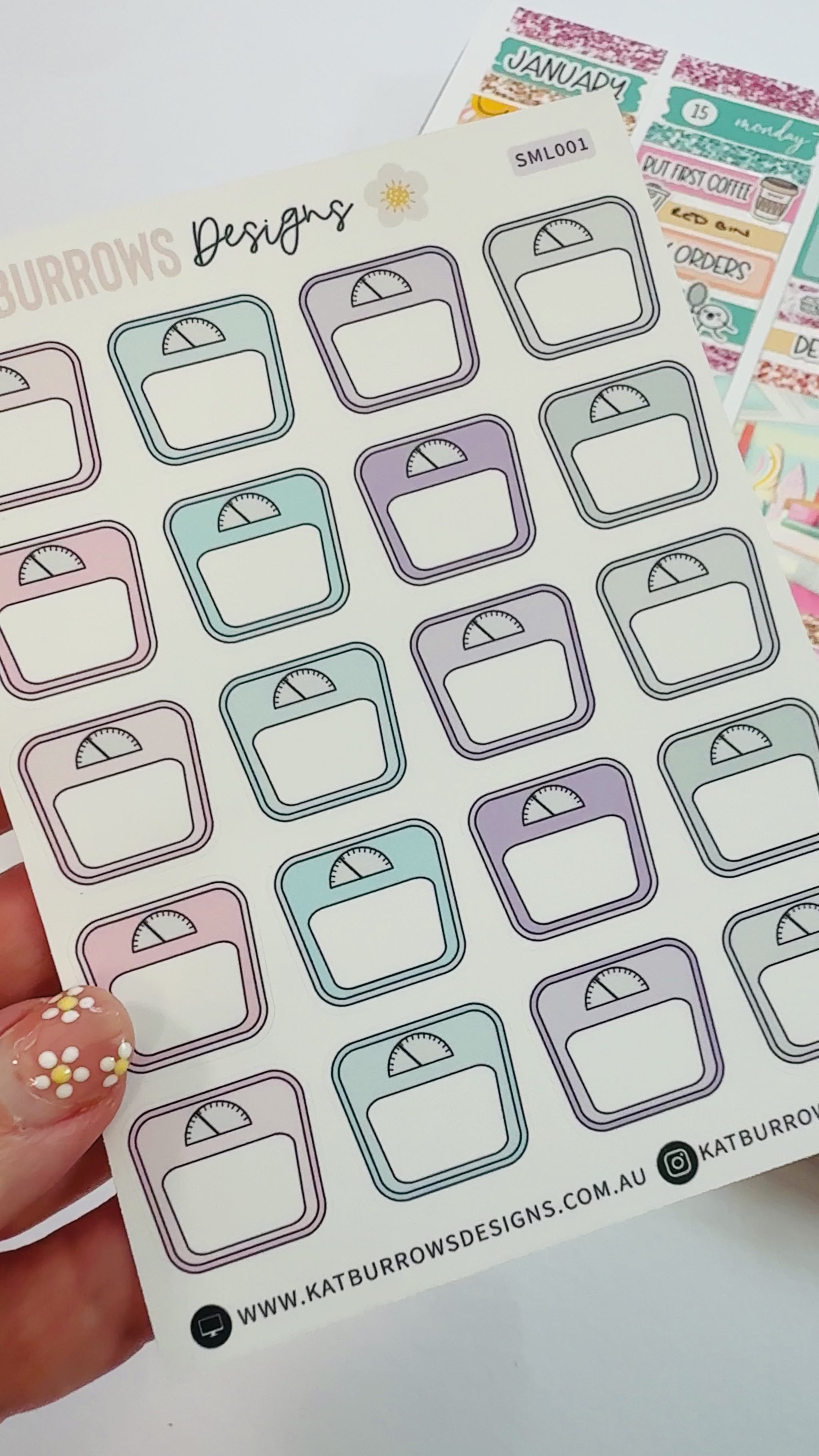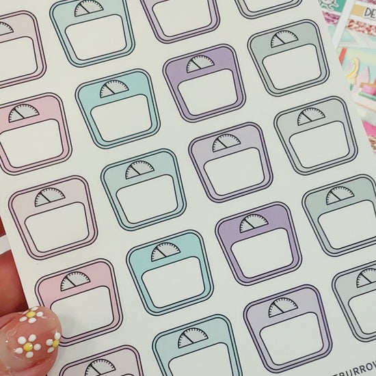 Track your health and fitness with these scale icon planner stickers in assorted colours. Perfect for planners and calendars, these functional stickers add a colourful touch while keeping you organised and motivated. Whether you’re using an Erin Condren Planner, Happy Planner, Bullet Journal, or any other popular layout, these stickers fit seamlessly into your planner.