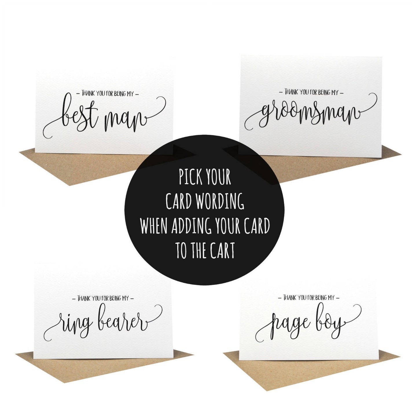 A stylish Thank You for being my {INSERT YOUR OPTION} Handmade Wedding Card featuring a beautiful script font for that very special occasion.