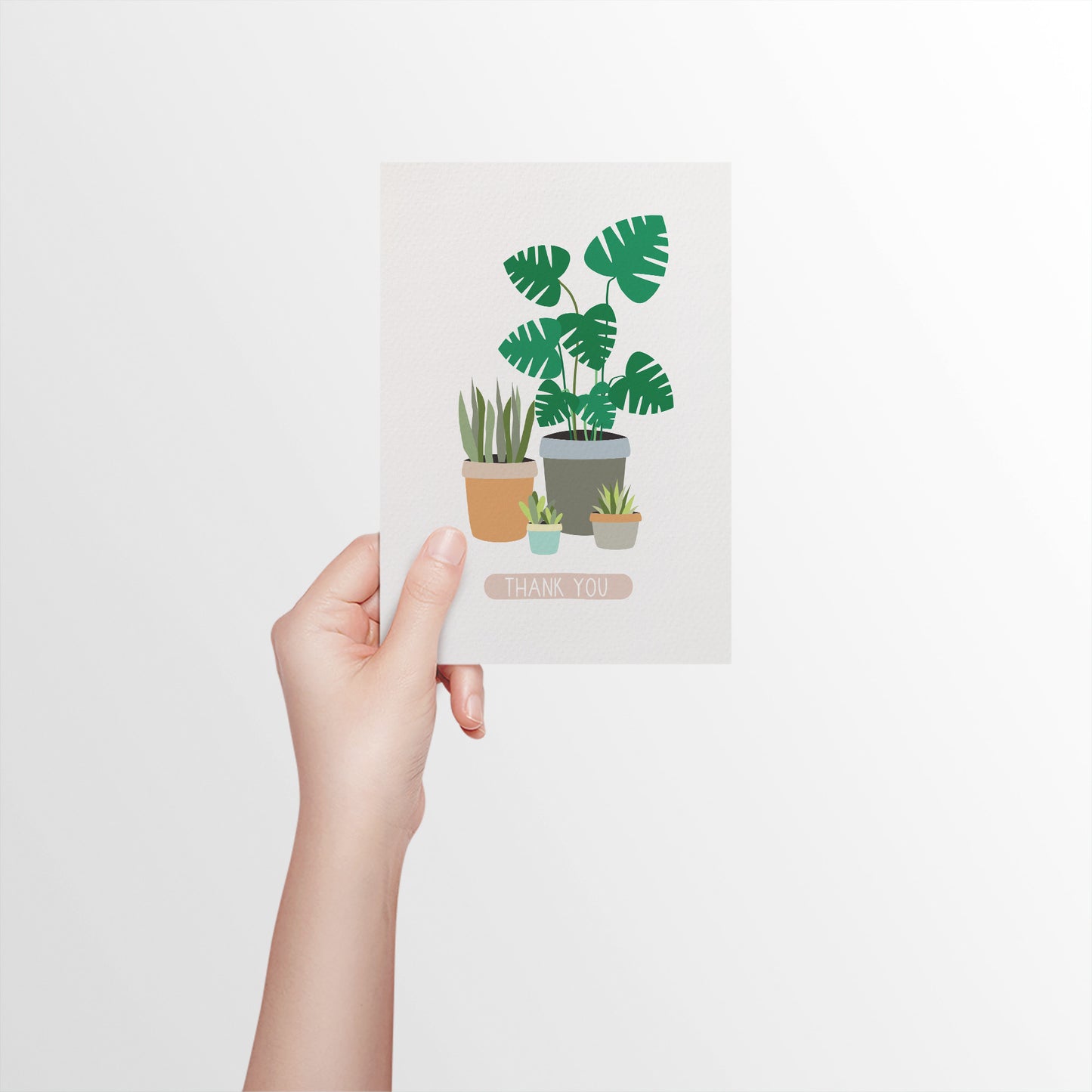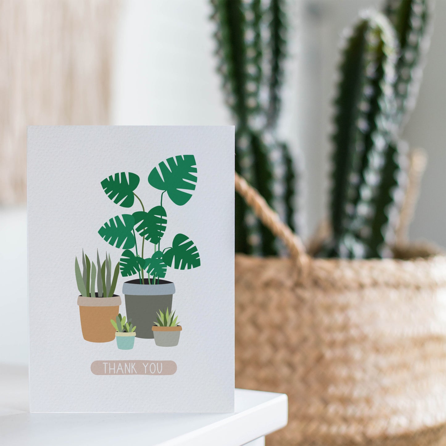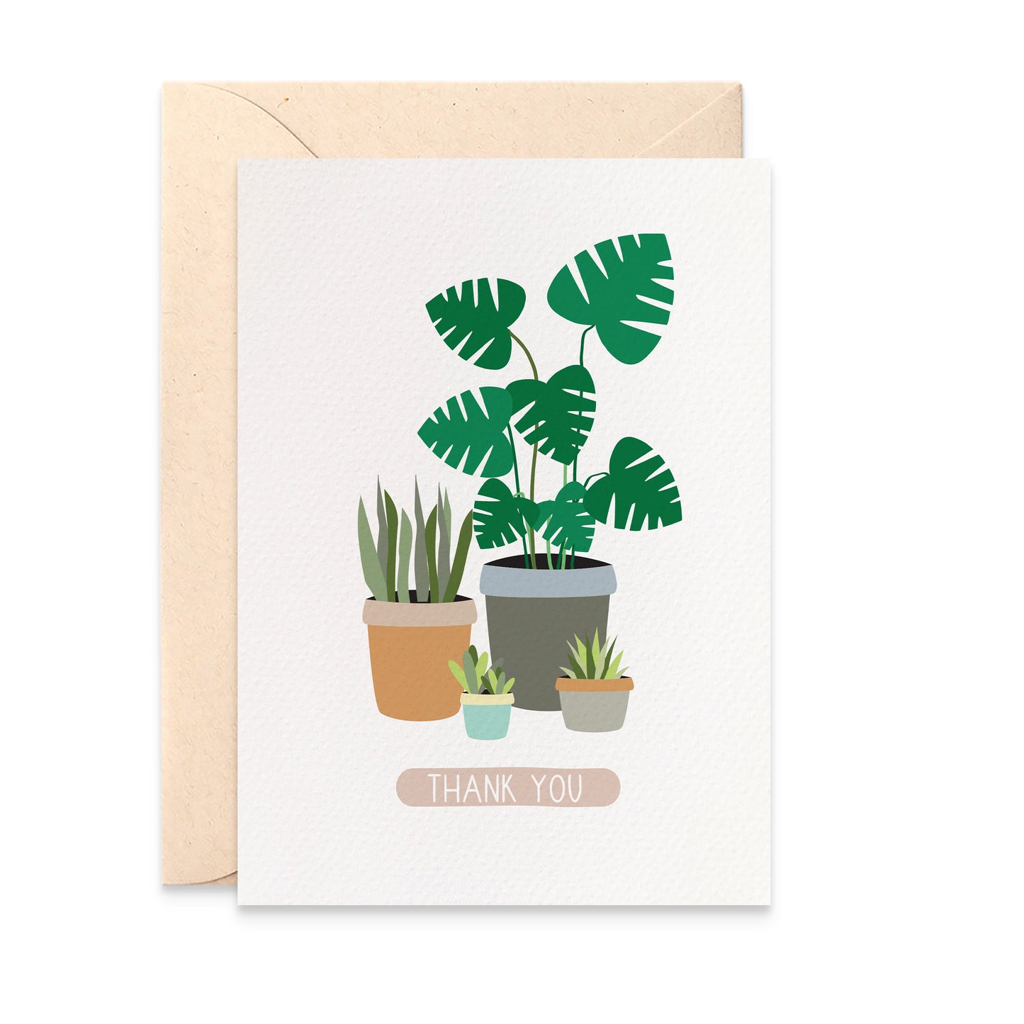 A beautiful handmade Thank You Card featuring Indoor Plants. A special greeting card to send to someone to say Thank You.