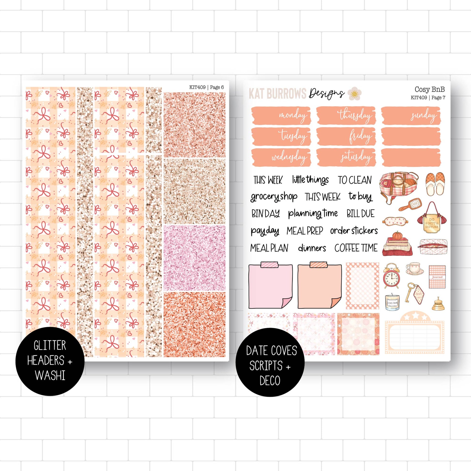 - Kiss cut stickers, ready to peel and use in your planner.