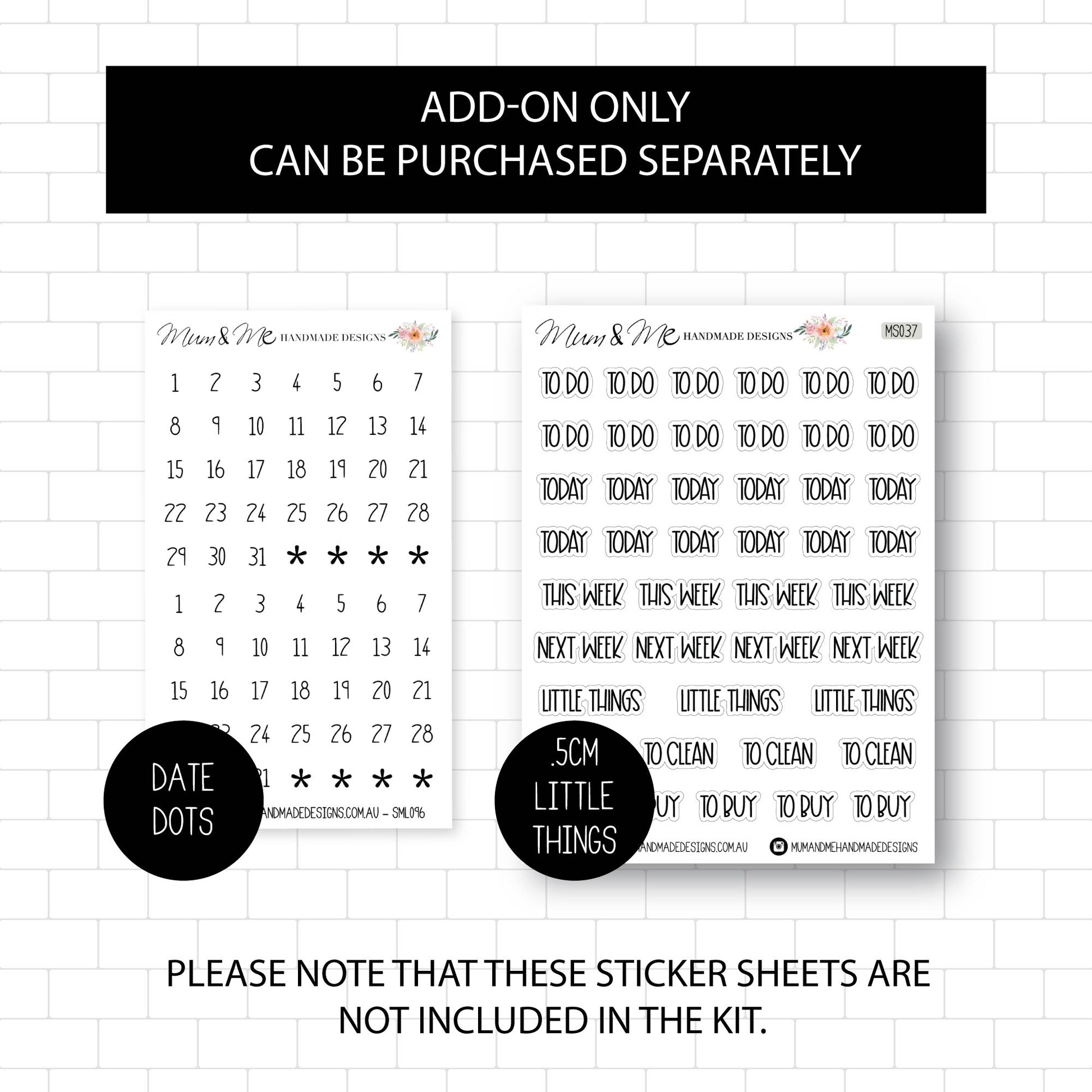 - Kiss cut stickers, ready to peel and use in your planner.
